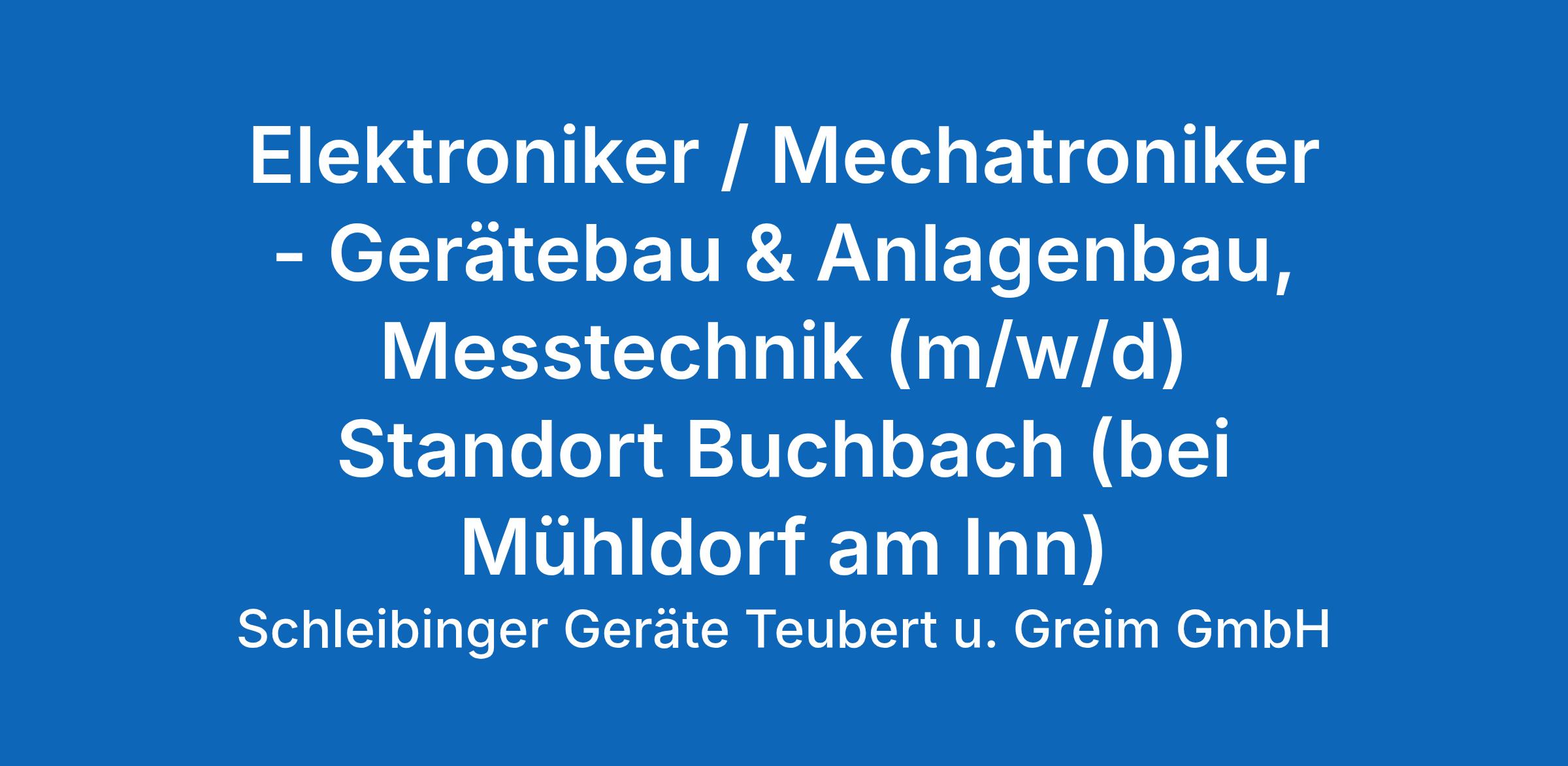 Elektroniker / Mechatroniker - Gerätebau & Anlagenbau, Messtechnik (m/w/d) Standort Buchbach (bei Mühldorf am Inn)