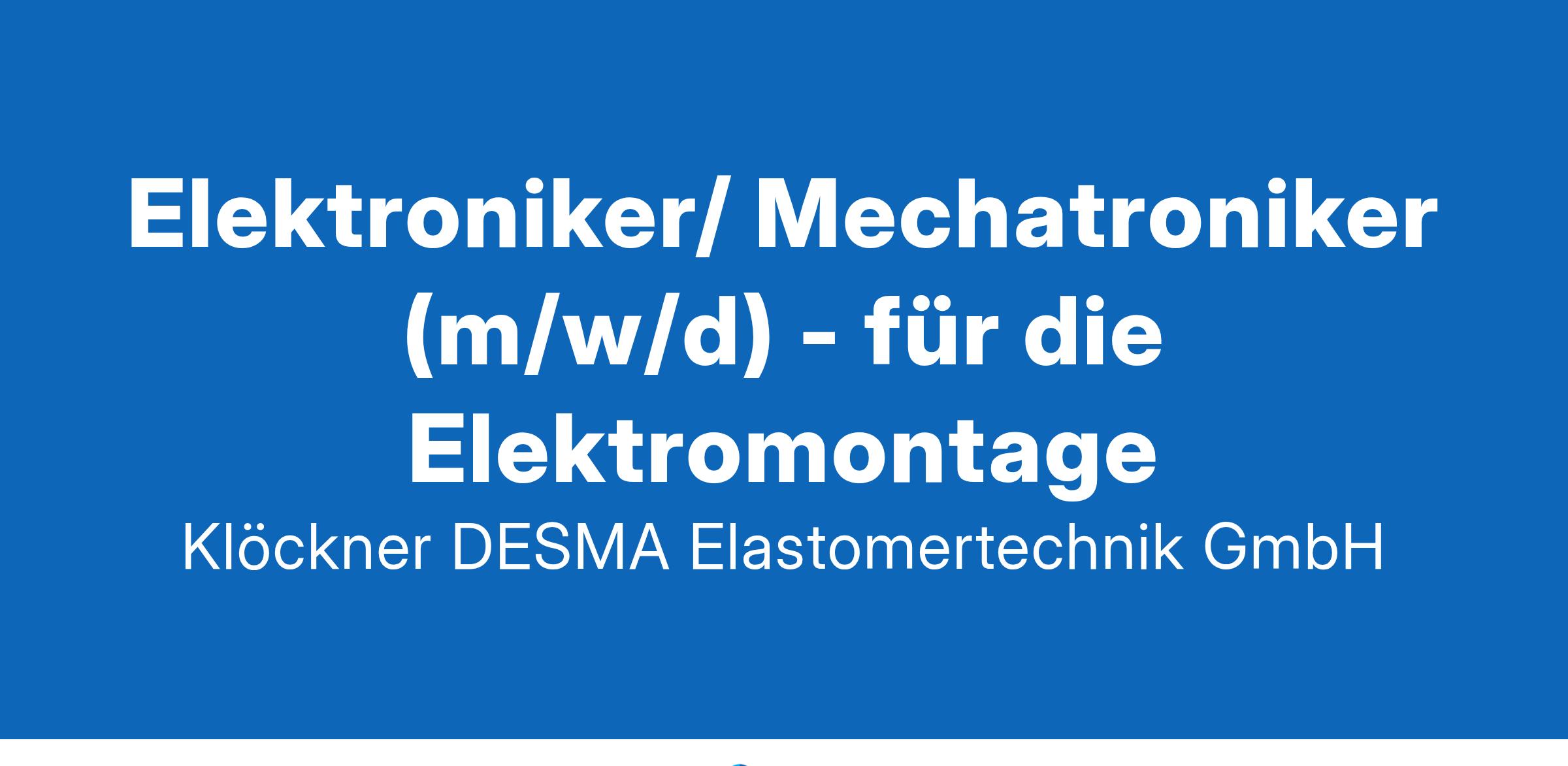 Die Klöckner DESMA Elastomertechnik GmbH ist ein Unternehmen des Salzgitter-Konzerns und ein weltweit führendes Unternehmen im Bereich von Kunststoffspritzgießmaschinen für die Elastomertechnik. Seit 60 Jahren entwickeln und vertreiben wir technologisch anspruchsvolle und komplexe Maschinen in vielen Varianten für den Weltmarkt im Bereich Elastomertechnik. Mit eigenen Produktions- und Vertriebsgesellschaften in Deutschland, USA, China, Indien und der Slowakei sind wir weltweit in wichtigen Märkten eigenständig aufgestellt und bedienen mit rund 500 Mitarbeitern in unserer Gruppe unsere Märkte und Kunden. Wir befinden uns in einem dynamischen Weiterentwicklungs- und Wachstumsprozess und suchen motivierte Menschen, die mit uns diesen Wandel mitgestalten wollen. Elektroniker/ Mechatroniker (m/w/d) - für die Elektromontage Aufgaben Selbständige Elektroinstallation incl. Steuerungstechnik unserer Spritzgussmaschinen Aufbau und Mitwirkung an Automatisierungskomponenten (Zellen), wie z. B. Robotik, Greifer- und Fördertechnik sowie zusätzlichen Bearbeitungsstationen (Beschriftungen, Teilenachbearbeitungen, QS-Komponenten, Kamerasysteme) Inbetriebnahme unserer Maschinen und Anlagen incl. den Automatisierungszellen innerhalb des Montageteams Feststellung und Dokumentation von Funktionsabweichungen nach der Inbetriebnahme Abstimmung von Optimierungen mit angrenzenden Bereichen für eine verbesserte Produkt- und Prozessqualität Qualifikation Abgeschlossene Berufsausbildung zum Elektriker, Elektroniker, Mechatroniker oder vergleichbare Qualifikation Fundierte Kenntnisse in den Bereichen Elektromontage, Automatisierungstechnik, Steuerungstechnik Ein hohes Maß an Motivation und Engagement sowie Flexibilität und Teamfähigkeit Benefits eigenverantwortliche, herausfordernde Aufgaben in einem dynamischen Arbeitsumfeld moderne und neue Werkzeuge, eigenes Equipment unbefristeter Arbeitsvertrag, 35 Stundenwoche, flexibles Arbeitszeitmodell, 4-Tage-Woche (MO-DO) leistungsgerechte Vergütung mit Tarifbindung Mitarbeiter-Benefits freundlicher, respektvoller und wertschätzender Umgang miteinander flache Hierarchien und schnelle Entscheidungen Wir freuen uns auf Ihre Bewerbung mit Lebenslauf und relevanten Zeugnissen unter Angabe Ihrer Gehaltsvorstellung und des frühestmöglichen Startdatums.