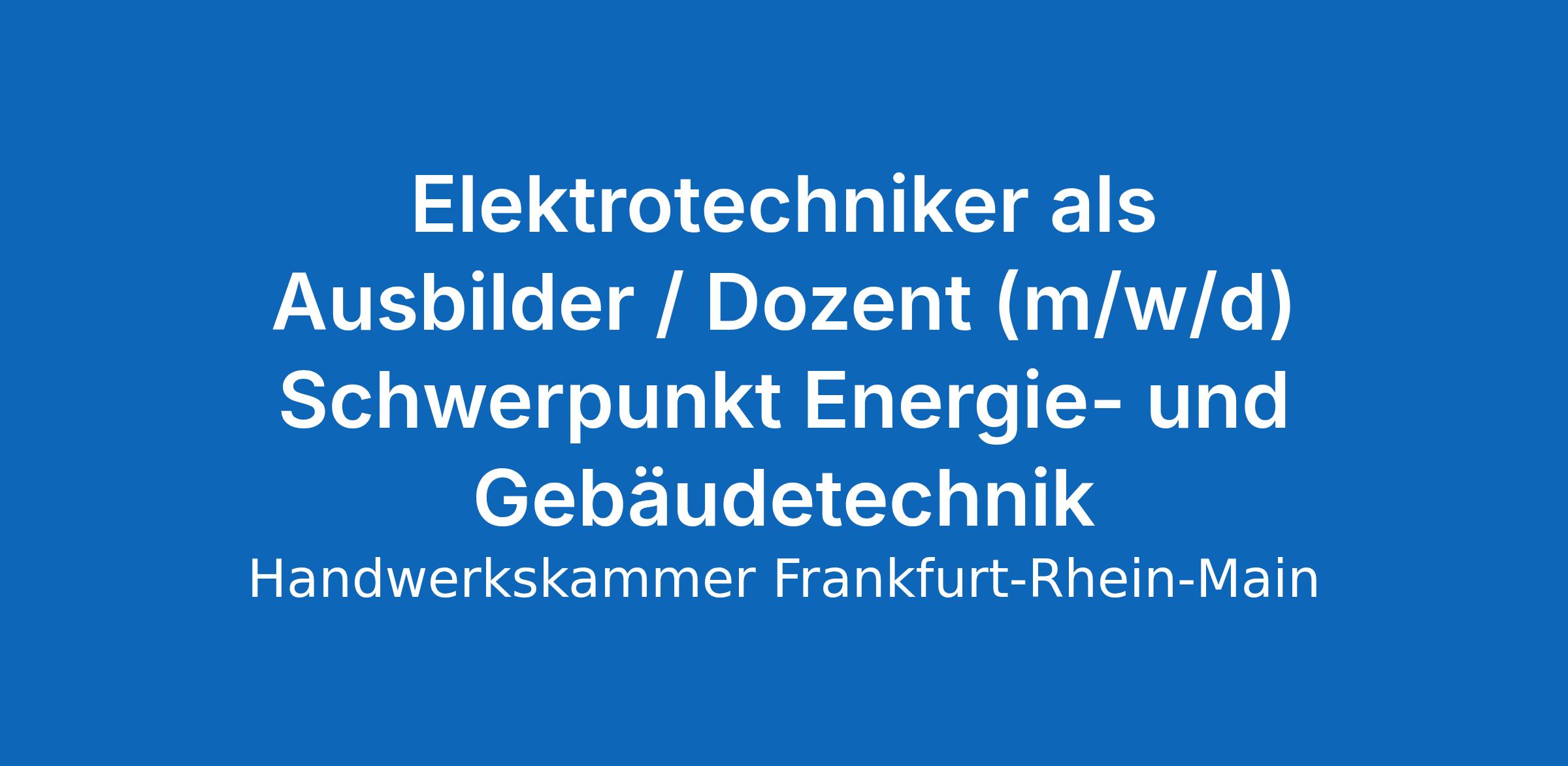 Elektrotechniker als Ausbilder / Dozent (m/w/d) Schwerpunkt Energie- und Gebäudetechnik
