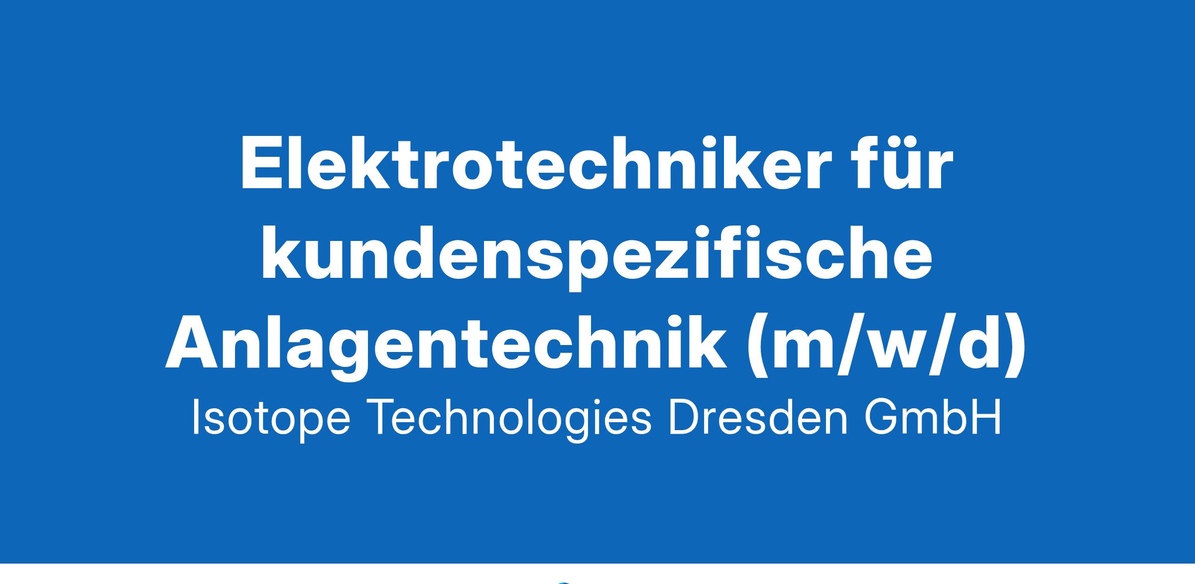 Derzeitig beschäftigt die ITD an seinem Standort in Dresden-Rossendorf ca. 90 der über 1000 Mitarbeitenden der Eckert & Ziegler Gruppe. Unsere Mission: WIR HELFEN ZU HEILEN | CONTRIBUTING TO SAVING LIVESIhr Beitrag zum Erfolg: Verdrahtung und Verschlauchung der elektrischen und pneumatischen Komponenten, sowie deren VDE-Abnahme am Standort und beim Kunden (national & international) Unterstützung bei der mechanischen Anlageninstallation am Standort und beim Kunden (national & international) Vorgabe von regelmäßigen Prüfterminen der Kundenanlagen nach Anlageninstallation Ansprechpartner für den Elektroingenieur bei Maschinenauslegung und Komponentenauswahl Nach intensiver Einarbeitung: Teil-Verantwortliche Elektrofachkraft, für den praktischen Teil, wie Prüfung der Maschinen und Anlagen für unsere Kunden vor der Anlagenauslieferung und Abnahme beim Kunden vor Ort Das qualifiziert Sie: abgeschlossene Ausbildung zum Industrieelektriker, Mechatroniker (m/w/d) oder vergleichbare Ausbildung Berufserfahrung und einschlägige Fachkompetenz im Bereich Maschinen- und Anlagenbau sehr gute Kommunikationsfähigkeit in Deutsch und Englisch Bereitschaft zum weltweiten Montage- oder Service-Einsatz von bis zu 30% Eigeninitiative, Analyse- und Problemlösefähigkeit sowie gutes räumliches Vorstellungsvermögen Ausgeprägte Teamfähigkeit und Motivation sich persönlich und fachlich weiterentwickeln zu wollen Selbstständigkeit, Organisationstalent, Zuverlässigkeit und Verantwortungsbewusstsein Freuen Sie sich auf: eine familienfreundliche Ausrichtung mit flexiblen Arbeitszeiten einen unbefristeten und sicheren Arbeitsplatz in einem sehr offenen, freundlichen und erfahrenen Team Attraktive Vergütung sowie vermögenswirksame Leistungen, betriebliche Altersvorsorge, Kindergartenzuschuss 30 Tage Urlaub und anlassbezogene bezahlte Freistellungen z.B. für Umzug, Krebsvorsorge oder Kind-Krank-Tage Gesundheitsangebote, z.B. Krankenkassen Gesundheitstage und Firmenfitness in Kooperation mit Hansefit Interessante und herausfordernde Tätigkeit mit hoher Eigenverantwortung im radiopharmazeutischen Sektor Angebot von Bike Leasing Möglichkeit zur individuellen Weiterentwicklung und -bildung während der Arbeitszeit Flache Hierarchien und kurze Entscheidungswege kostenlose Parkmöglichkeiten KontaktWenn Sie Interesse an dieser vielseitigen Tätigkeit haben, bitten wir Sie um Zusendung Ihrer aussagefähigen Bewerbungsunterlagen (ausschließlich über unser Online-Bewerbungsformular) unter Angabe Ihrer Gehaltsvorstellung. Jetzt bewerben Werden Sie Teil unseres Teams! Isotope Technologies Dresden GmbH • Personalmanagement • Frau Susann König Rossendorfer Ring 42 • 01328 Dresden • work@ezag.com • www.itd-dresden.de