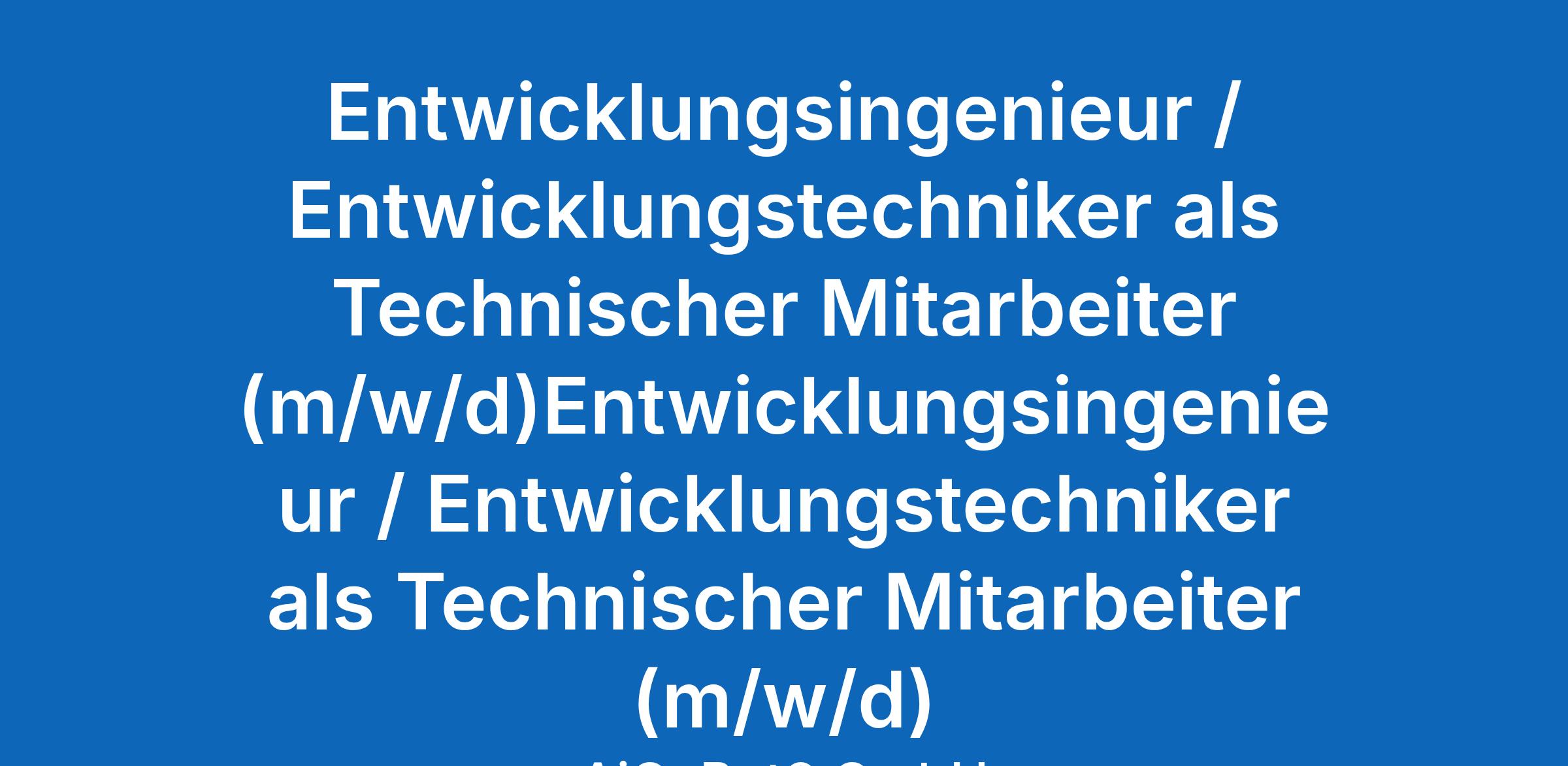 Entwicklungsingenieur / Entwicklungstechniker als Technischer Mitarbeiter (m/w/d)