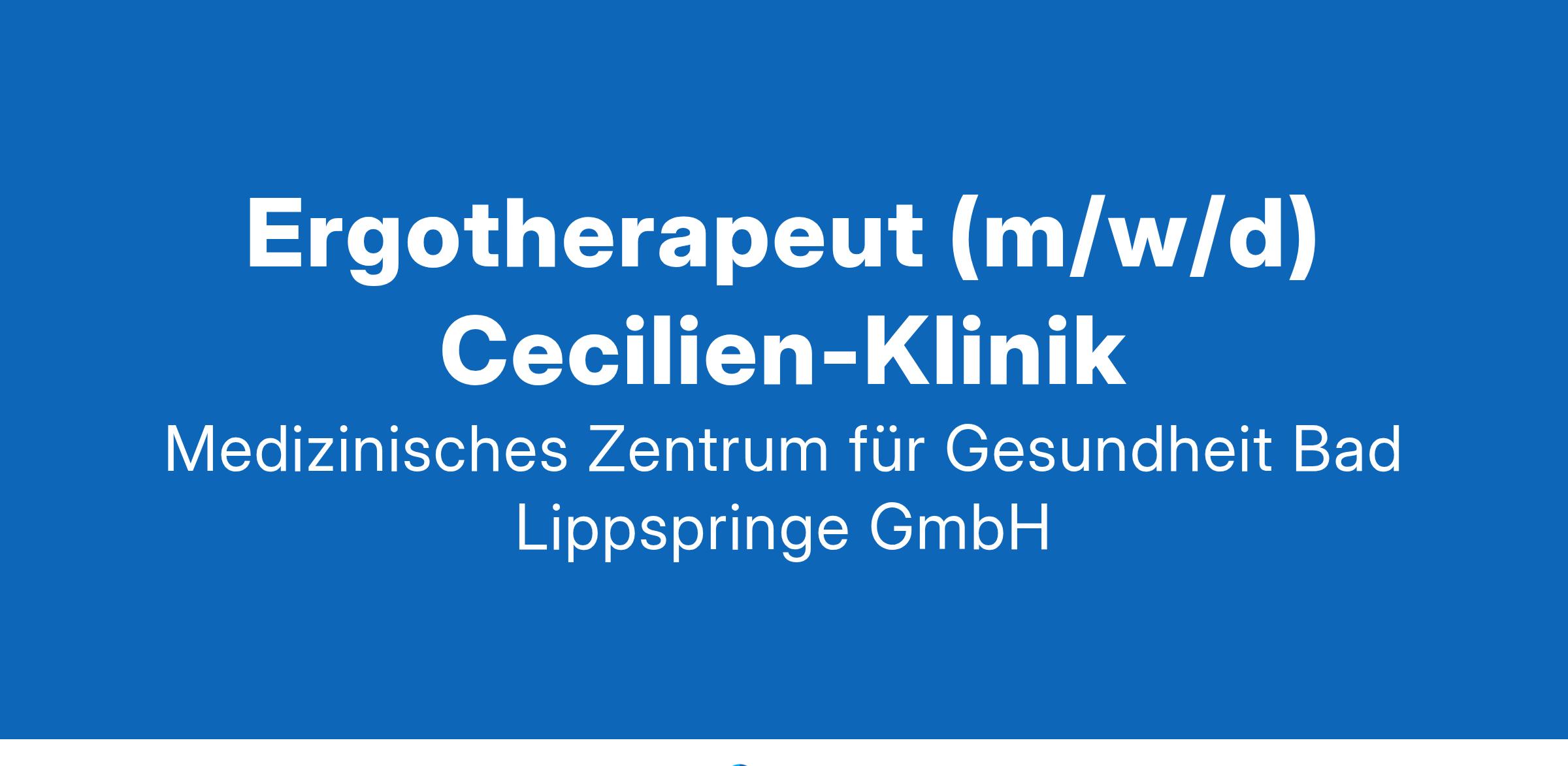 Ergotherapeut (m/w/d) Cecilien-KlinikDas Medizinische Zentrum für Gesundheit in Bad Lippspringe ist ein leistungsstarker Klinikverbund mit vielfältigen Angeboten in der Prävention, Akutmedizin, Rehabilitation und Pflege mit rund 1.200 Beschäftigten und 200 Auszubildenden.
