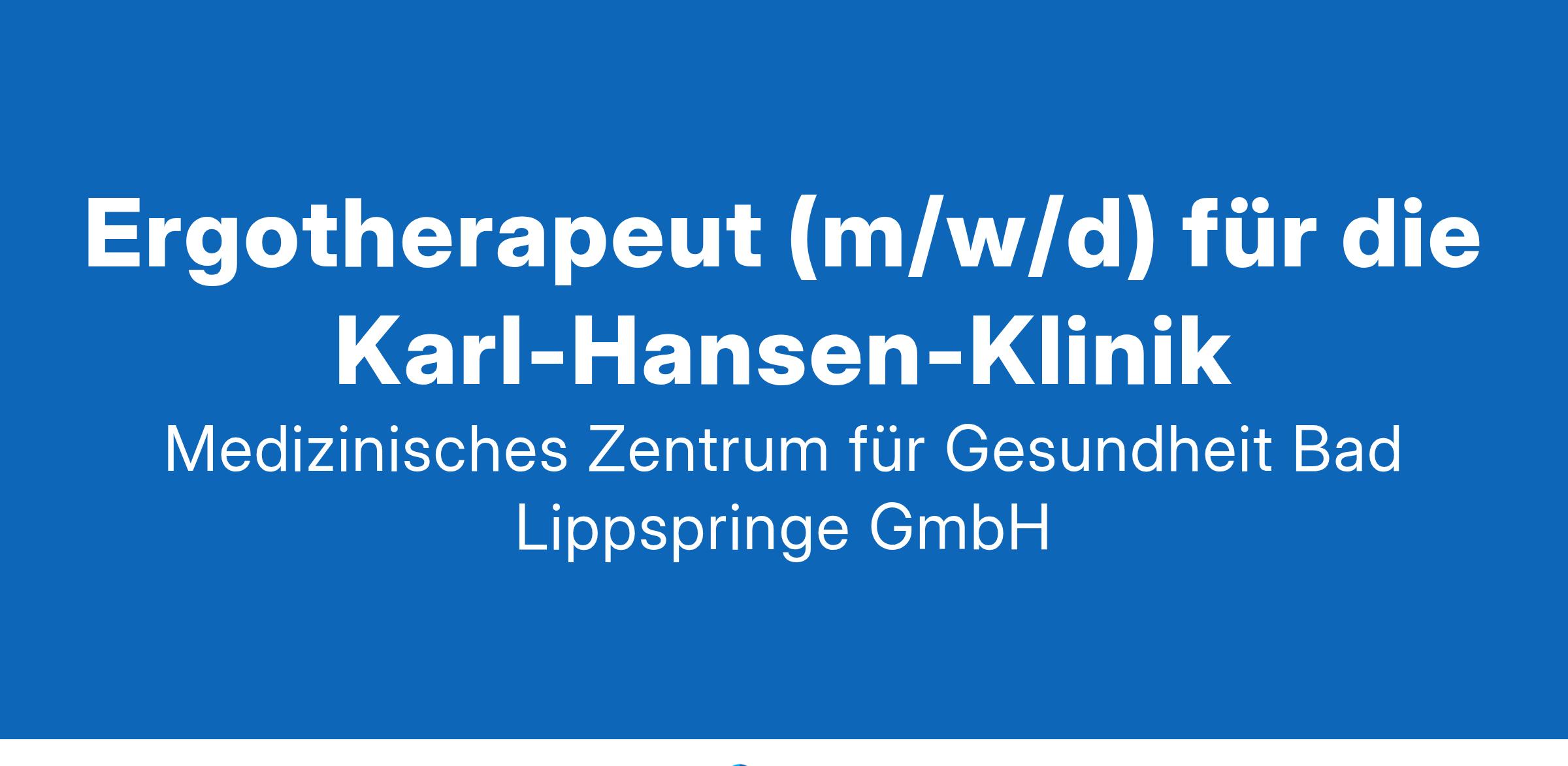 Ergotherapeut (m/w/d) für die Karl-Hansen-KlinikDas Medizinische Zentrum für Gesundheit in Bad Lippspringe ist ein leistungsstarker Klinikverbund mit vielfältigen Angeboten in der Prävention, Akutmedizin, Rehabilitation und Pflege mit rund 1.200 Beschäftigten und 200 Auszubildenden.