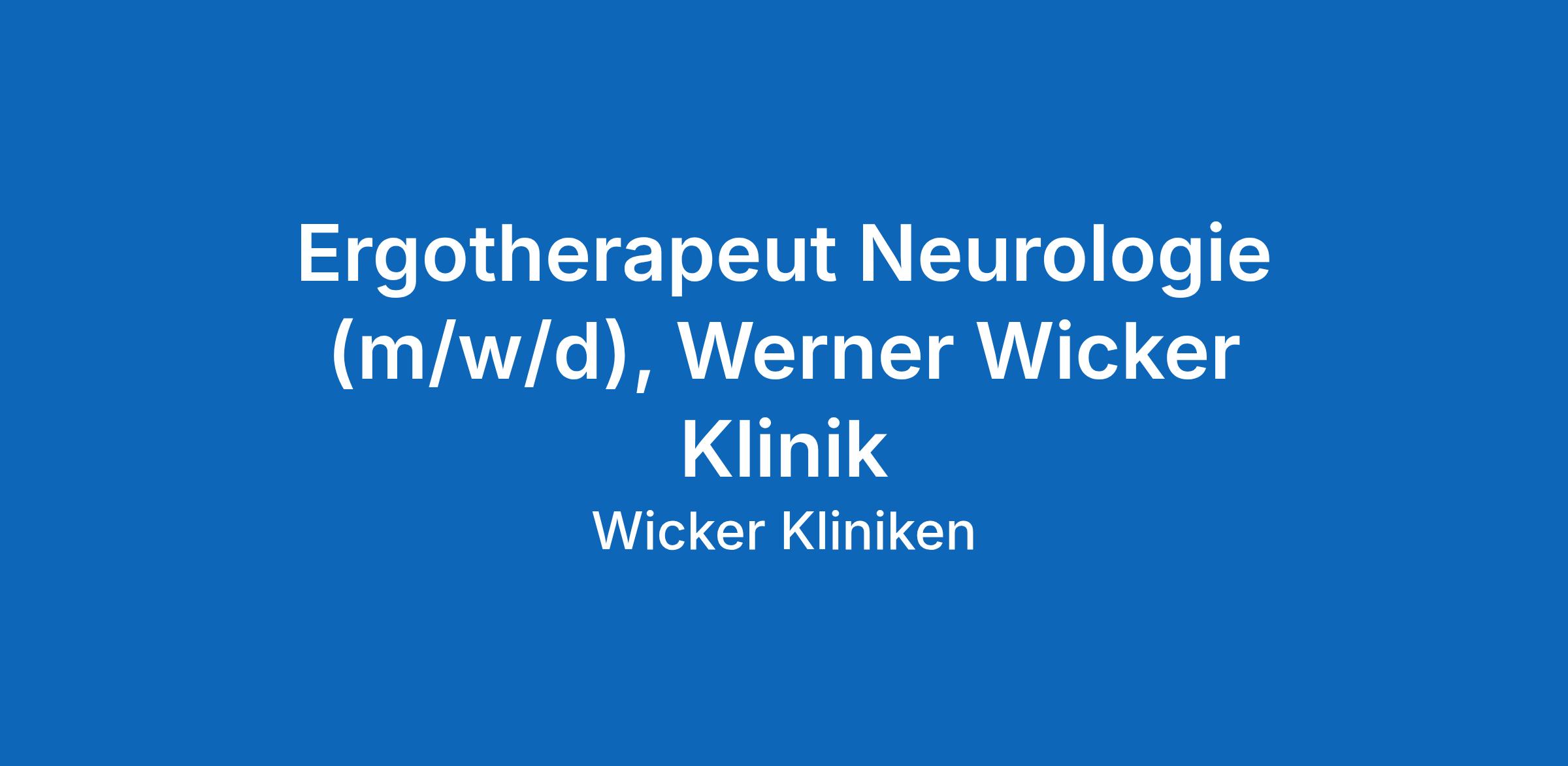 Ergotherapeut Neurologie (m/w/d), Werner Wicker Klinik
