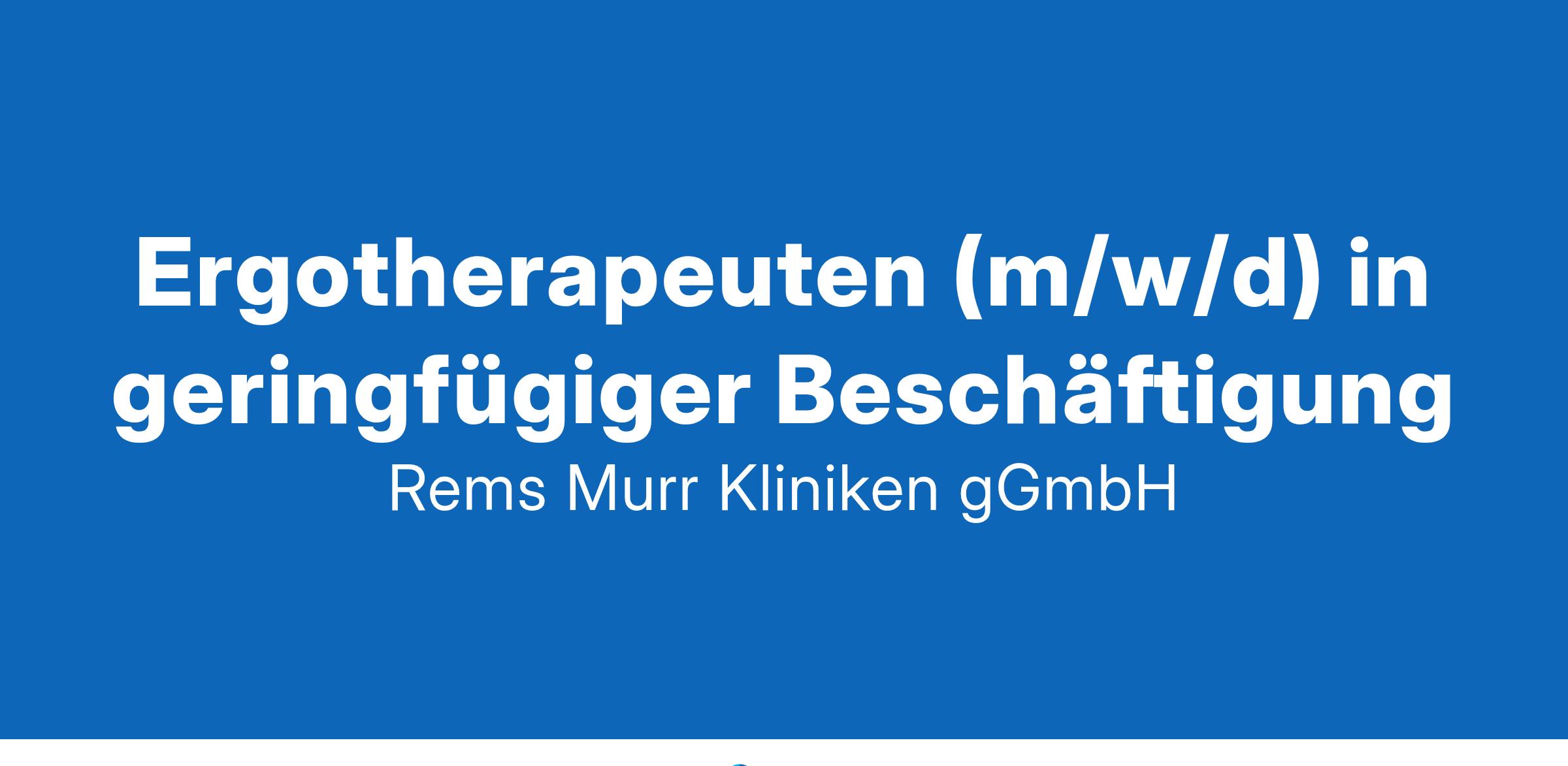 Stellen Sie sich vor, wir haben einen Job!Wir suchen zum nächstmöglichen Zeitpunkt in Teilzeit auf geringfügiger Basis für unsere Klinik Schorndorf einenErgotherapeuten (m/w/d) in geringfügiger Beschäftigungfür unser Therapeutisches TeamReferenznummer: S-2-286-21Ihre AufgabenSelbstständige Durchführung von Einzel- und Gruppentherapien