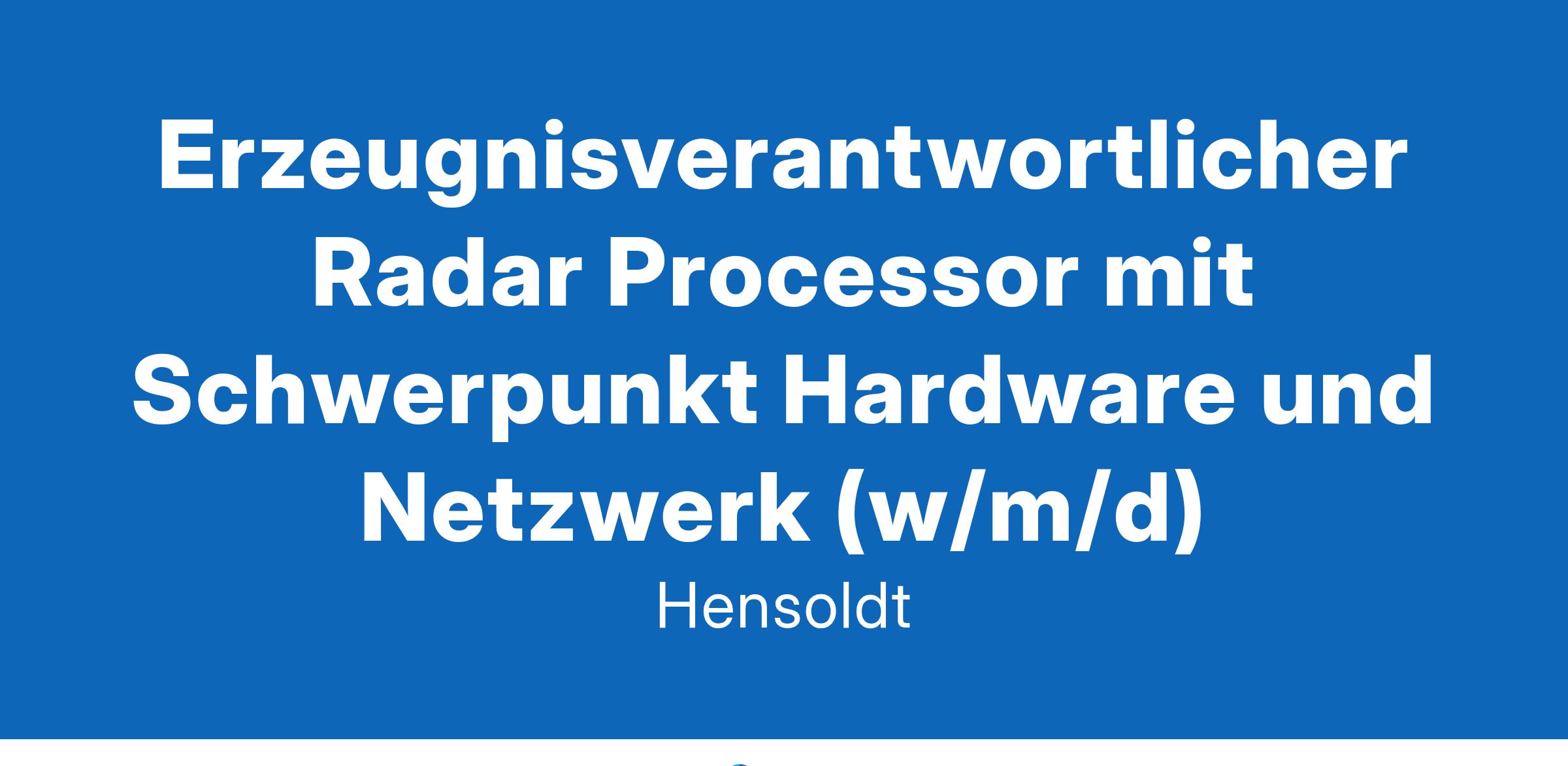Erzeugnisverantwortlicher Radar Processor mit Schwerpunkt Hardware und Netzwerk (w/m/d)