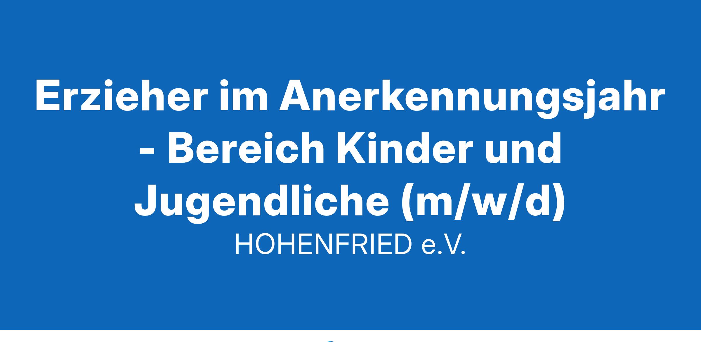 Erzieher (m/w/d) im Anerkennungsjahr - Kinder- und Jugendbereich Hohenfried e.V. für September 2025