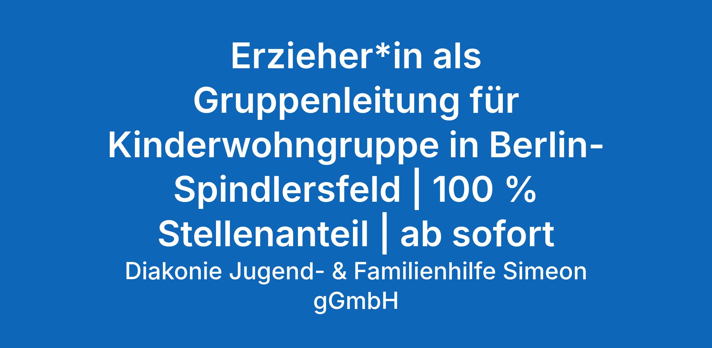 Erzieher*in als Gruppenleitung für Kinderwohngruppe in Berlin-Spindlersfeld | 100 % Stellenanteil | ab sofort