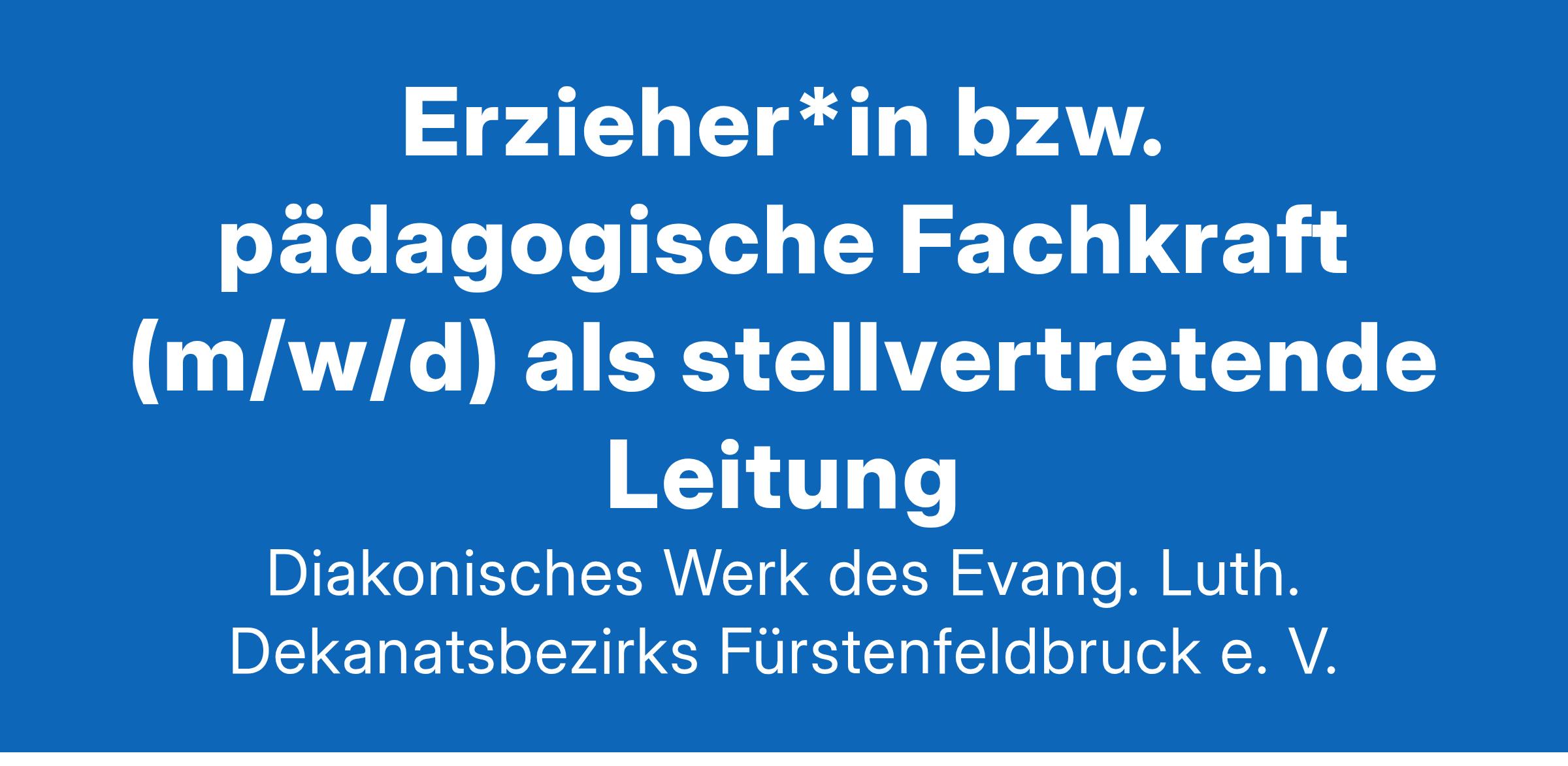 päd. Fachkraft (m/w/d) als stellvertretende Leitung in Vollzeit Was wir uns von Dir wünschen Mit einem Abschluss in Sozialpädagogik, als Erzieher*in bzw. pädagogische Fachkraft (oder mit einer vergleichbaren Qualifikation) schaffst Du einen sicheren, beschützten Raum, in dem sich die Kinder zu selbstständigen Persönlichkeiten entwickeln können. Mit Deinem Fachwissen unterstützt Du unsere Leitung nicht nur bei der Weiterentwicklung unserer Konzepte und unseren pädagogischer Angebote, sondern auch bei administrative und verwaltungs technischen Aufgaben. Die Eltern siehst Du als wichtigen Bildungs- und Erziehungspartner für die Einrichtung. Bei Festen und Ausflügen bringst Du Deine Kreativität und Dein Organisationstalent ein. Auch bei der Gestaltung der Gruppenräume freuen wir uns schon auf neue Ideen. Auf was Du Dich bei uns freuen kannst Tarifliche Sicherheit durch Eingruppierung nach AVR Diakonie Bayern mit Jahressonderzahlung, attraktiver Zusatzversorgung und Beihilfeversicherung sowie Betriebsrente Doppelte Ballungsraumzulage von bis zu 270 € im Monat und eine Extra-Zulage Familienbudget nach AVR Diakonie Bayern mit bis zu zwei zusätzlichen Urlaubstagen und flexible Arbeitszeiten Angenehmes Betriebsklima in einem modern ausgestatteten Arbeitsumfeld mit einem professionellen Team Unterstützung durch ein super nettes, engagiertes und erfahrenes Team Regelmäßige Mitarbeitergespräche Fort- und Weiterbildungsmöglichkeiten Exklusive Vergünstigungen