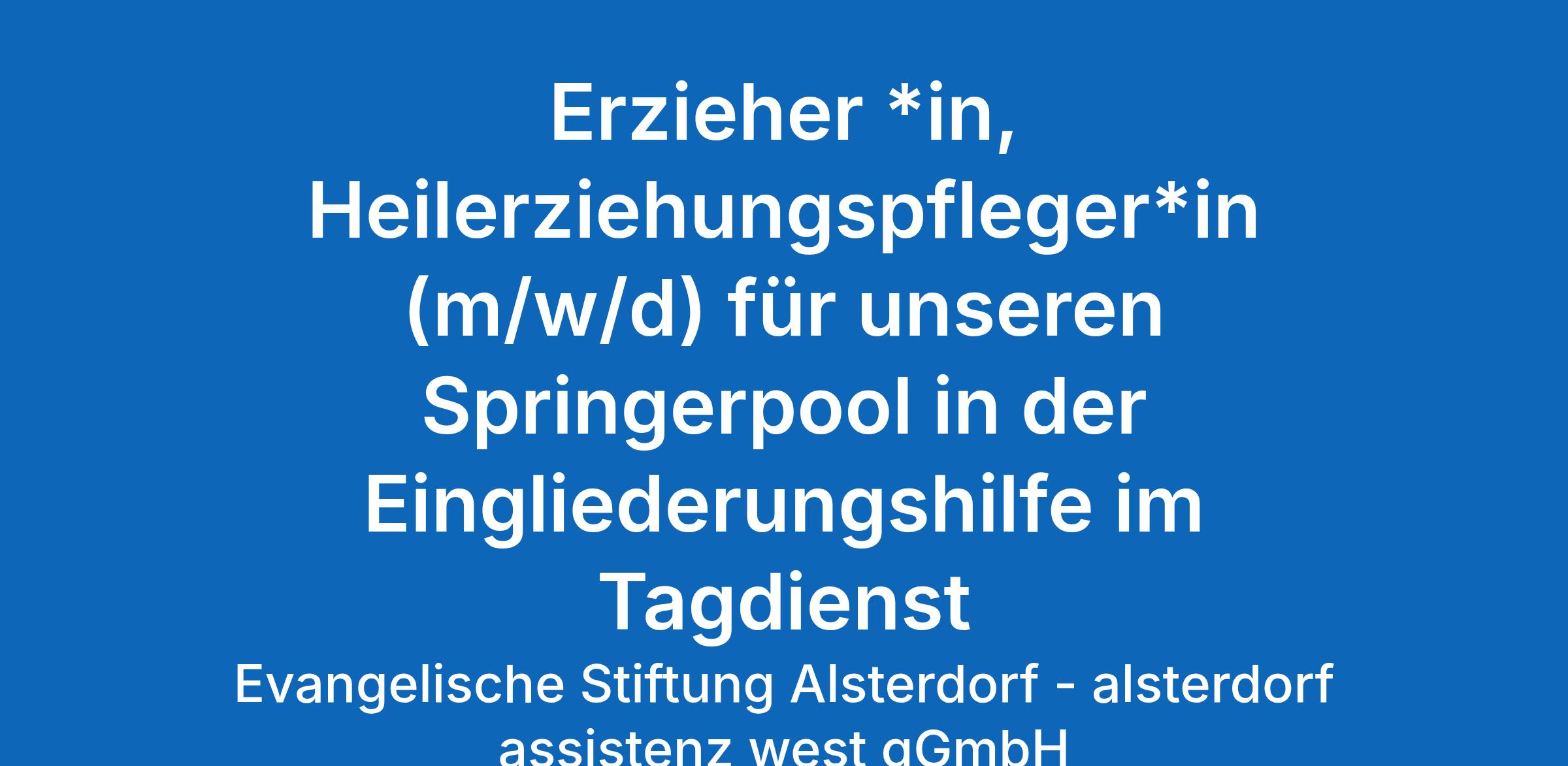 Erzieher *in, Heilerziehungspfleger*in (m/w/d) für unseren Springerpool in der Eingliederungshilfe im Tagdienst
