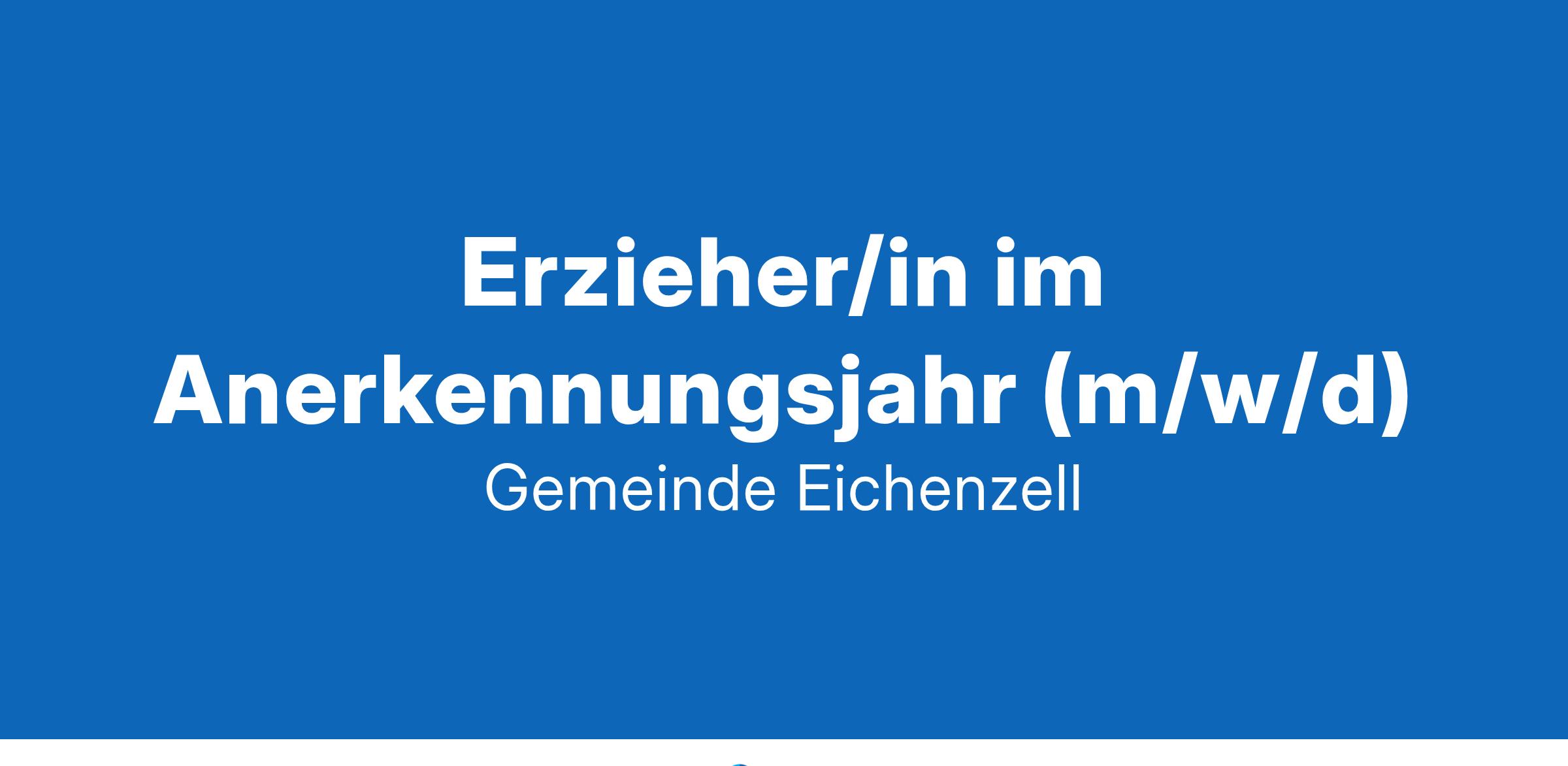 Stellenausschreibung der Gemeinde Eichenzell Erzieher/innen im Anerkennungsjahr (m/w/d) Die Gemeinde Eichenzell ist mit acht gemeindlichen Kindertagesstätten eine große Arbeitgeberin für Erzieherinnen und Erzieher. In den gemeindlichen Kindertagesstätten bieten wir zum 1. August 2025 freie Stellen an. Die genaue Stellenbeschreibung mit den gewünschten Anforderungsprofilen finden Sie unter: www.eichenzell.de