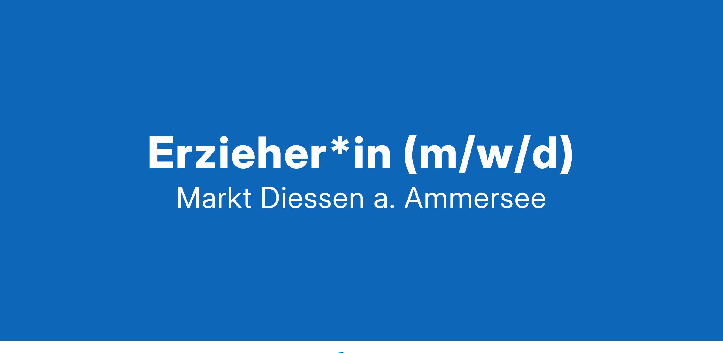 Erzieher*in (m/w/d) Der Markt Dießen am Ammersee (ca. 10.500 Einwohner), Landkreis Landsberg am Lech, sucht für das gemeindliche Kinderhaus in Riederau ab sofort eine/n staatlich geprüfte/n Erzieher/in (m/w/d) in Teilzeit mit 26 Wochenstunden Das gemeindliche Kinderhaus in Riederau ist eine moderne Einrichtung mit einer Krippen- und drei Kindergartengruppen, in der Kinder vom Säuglingsalter bis zum Schulkind nach teiloffenem Konzept – unter Berücksichtigung der Vorgaben des Bayerischen Kinderbildungs- und Betreuungsgesetzes (BayKiBiG) sowie des Bil-dungs- und Erziehungsplans (BEP) –