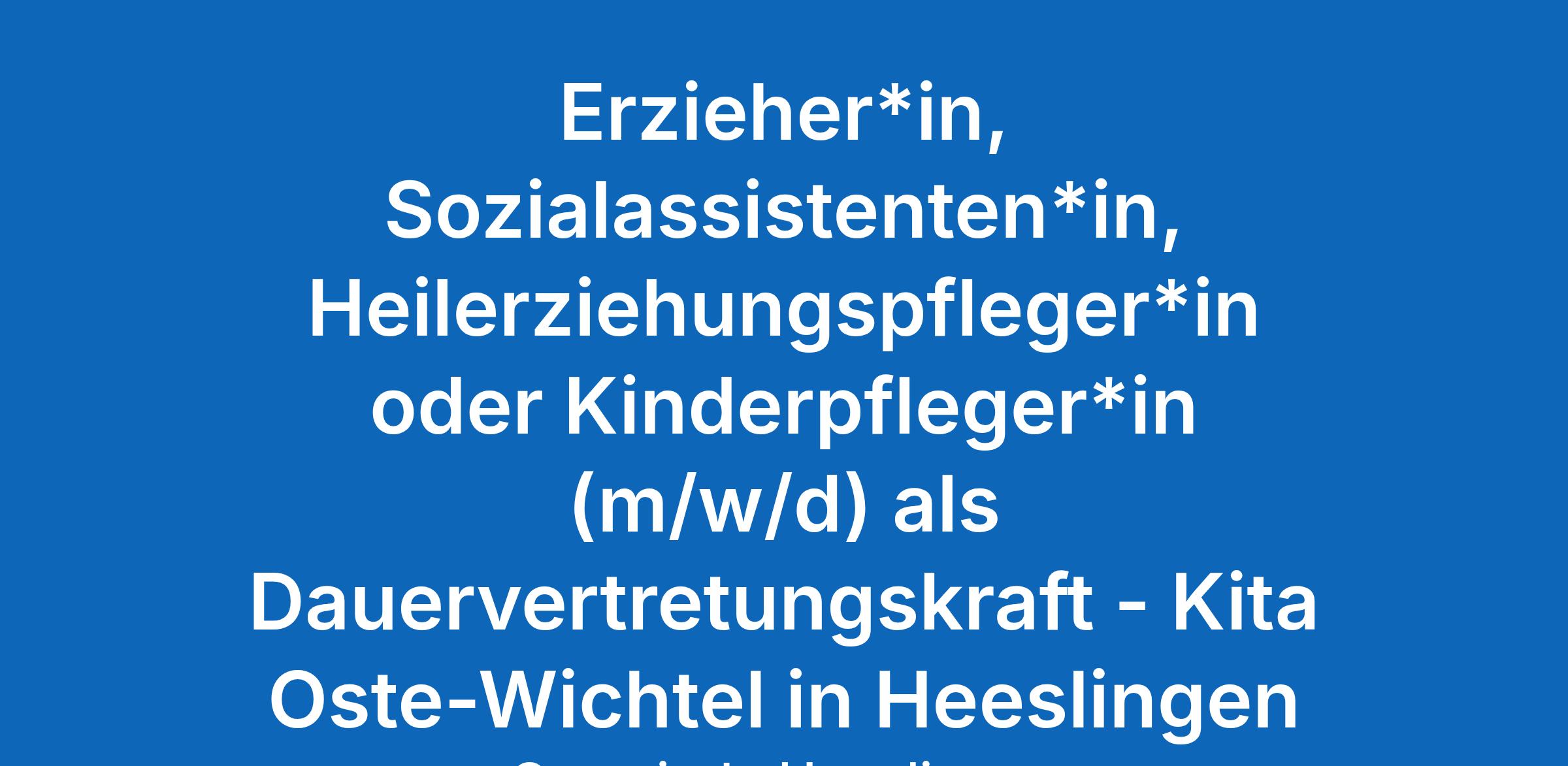 Erzieher*in, Sozialassistenten*in, Heilerziehungspfleger*in oder Kinderpfleger*in (m/w/d) als Dauervertretungskraft – Kita Oste-Wichtel in Heeslingen