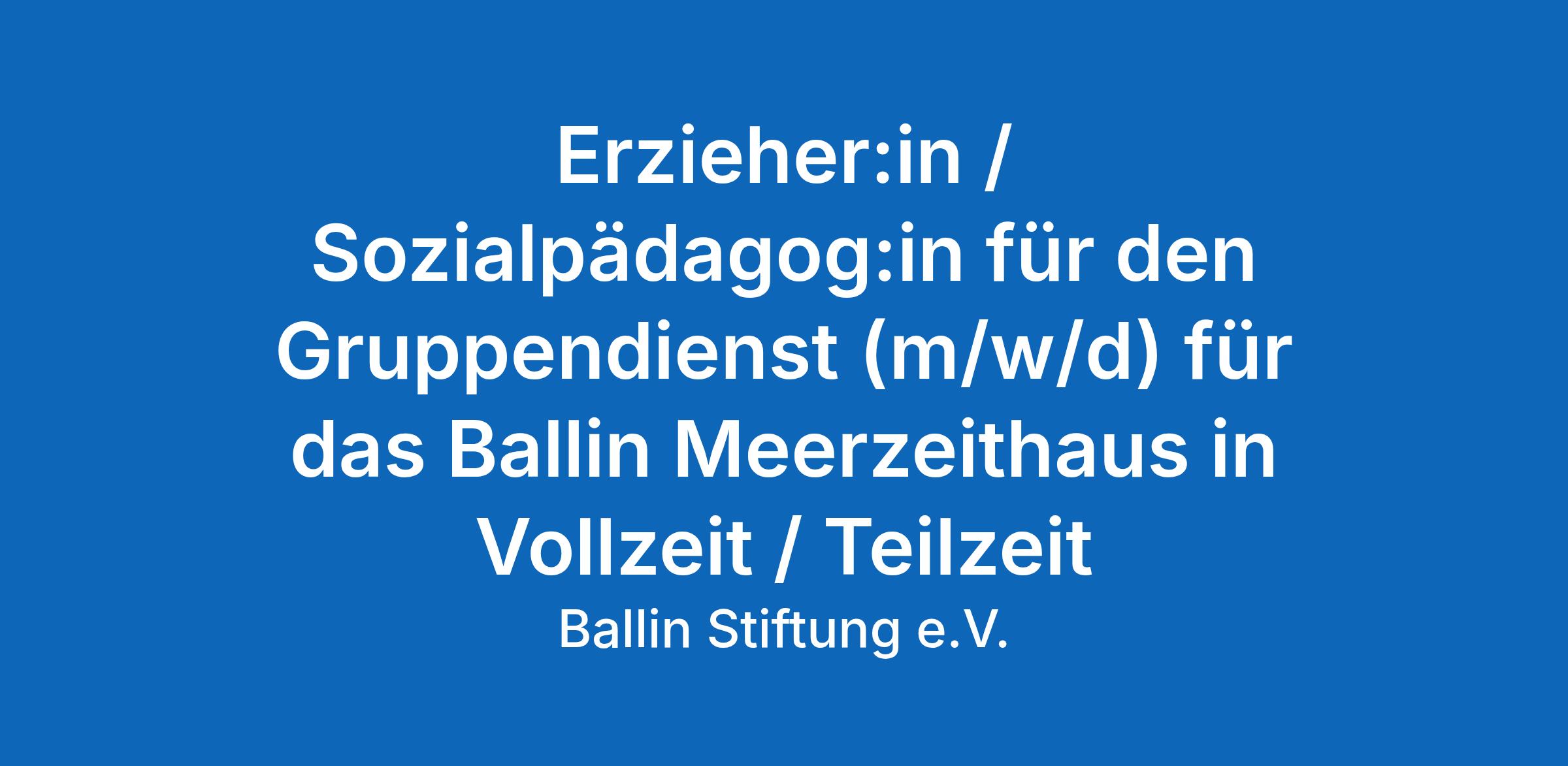 Erzieher:in / Sozialpädagog:in für den Gruppendienst (m/w/d) für das Ballin Meerzeithaus Wyk auf Föhr