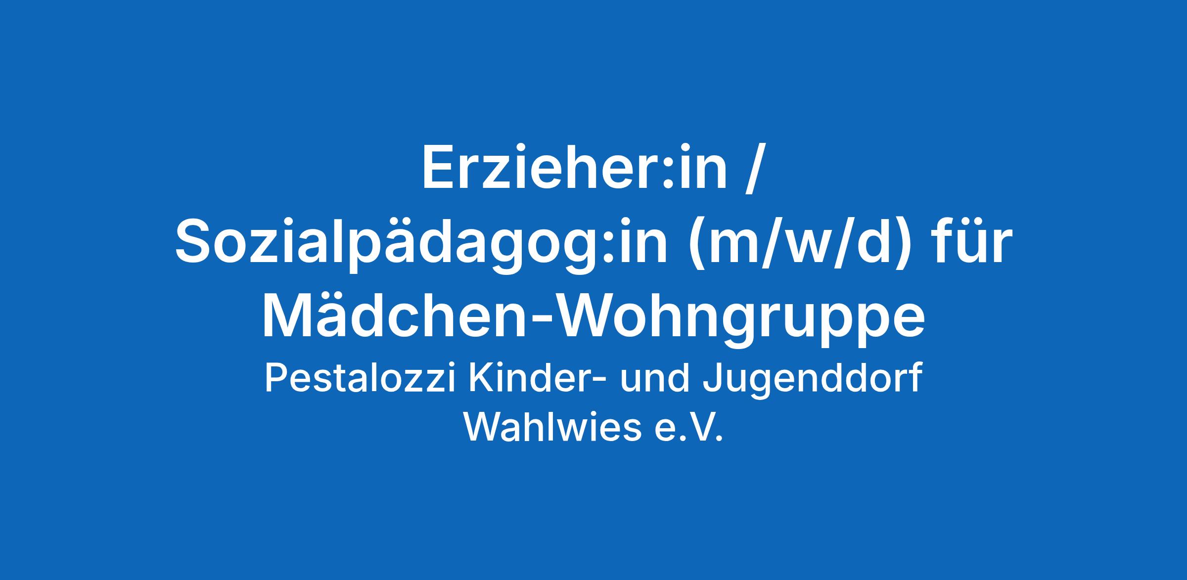 Erzieher:in / Sozialpädagog:in (m/w/d) für Mädchen-Wohngruppe.