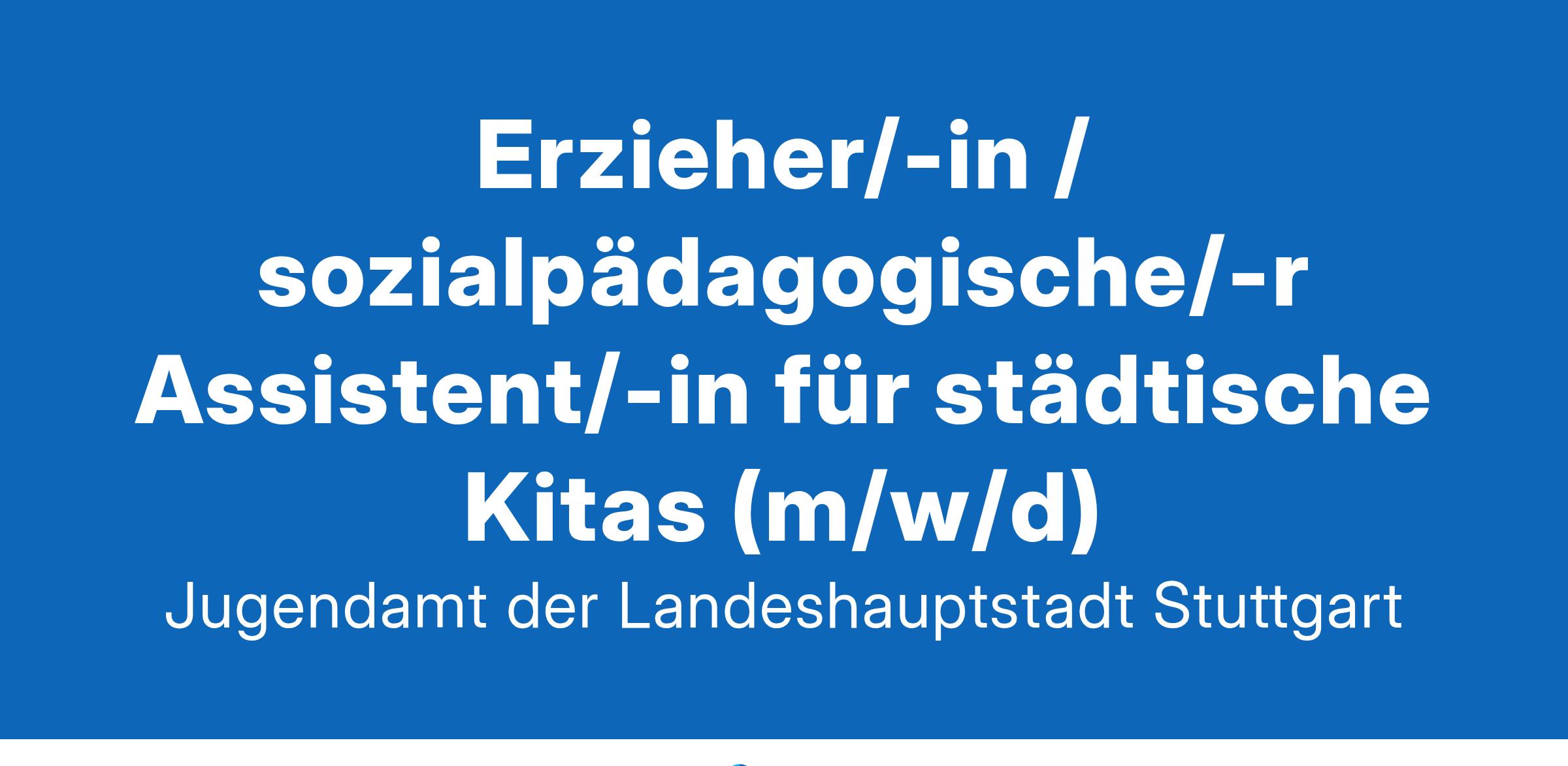 Erzieher/-in / sozialpädagogische/-r Assistent/-in für städtische Kitas (m/w/d) Wir suchen Sie für das Jugendamt der Landeshauptstadt Stuttgart. Das Jugendamt der Landeshauptstadt Stuttgart hat über 4.500 Beschäftigte und betreibt als größter Träger der öffentlichen Jugendhilfe verschiedene Alters- und Betriebsformen von rund 185 Tageseinrichtungen für Kinder. In unseren Tageseinrichtungen arbeiten wir nach dem pädagogischen Konzept „Einstein in der Kita“. Insgesamt nehmen 84 Einstein-Kitas am Bundesprogramm „Sprach-Kitas“ teil. Des Weiteren sind 12 Einstein-Kitas Kinder- und Familienzentren. Ein Job, der Sie begeistert