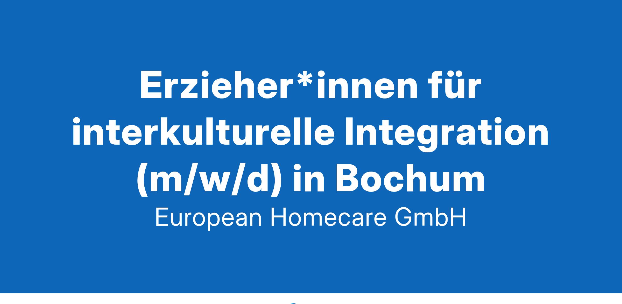 Die European Homecare GmbH übernimmt als soziales Dienstleistungsunternehmen, im Auftrag der öffentlichen Hand, seit über 30 Jahren in derzeit bundesweit rund 100 Einrichtungen mit insgesamt ca. 2.000 Mitarbeiter*innen Aufgaben im Bereich der Betreuung, Unterbringung und Versorgung von Asylbewerber*innen und Obdachlosen. Zur Unterstützung unseres Teams suchen wir zum nächstmöglichen Zeitpunkt mehrere Erzieher*innen (m/w/d), um Kinder aus unterschiedlichen Herkunftsländern in dem internen Kindergarten unserer Aufnahmeeinrichtung in Bochum zu betreuen.Ihre Aufgaben: Betreuung und Unterstützung der Asylbewerberkinder bei der Integration Spielerische Vermittlung der deutschen Sprache Förderung der Kreativität, Phantasie und Eigeninitiative der Kinder Vermittlung von Akzeptanz für Kinder anderer Kulturkreise und deren Wertvorstellungen Förderung sozialer und kommunikativer Fähigkeiten Unsere Anforderungen: staatlich anerkannte Erzieherinnen und Erzieher Hohes Maß an Verantwortungsbewusstsein sowie interkulturelle Kompetenz Sprachliche Kompetenzen, gerne Mehrsprachigkeit Belastbarkeit, Eigeninitiative, Einfühlungsvermögen, Flexibilität, sowie Motivation bzw. Leistungsbereitschaft Einwandfreies, erweitertes Führungszeugnis (Kostenübernahme erfolgt) Nachweis gemäß Masernschutzgesetz (Impfschutz/ Immunitätsnachweis) Zudem wäre es sehr wünschenswert, wenn Sie bereits an der Schulung "Ersthelfer am Kind" teilgenommen haben und Erfahrungen in der Betreuung von Kindern mit Migrationshintergrund mitbringen würden.Was wir bieten: leistungsgerechtes Gehalt sowie eine betriebliche Altersvorsorge eine anspruchs- sowie verantwortungsvolle Tätigkeit vielfältige Fort- und Weiterbildungsmöglichkeiten Coachings und Feedbackgespräche für Ihre individuelle und interkulturelle Entwicklung Vergünstigungen über Corporate Benefits Bei uns erwartet Sie eine abwechslungsreiche Tätigkeit in einem interkulturellen Arbeitsumfeld. Sie haben die Möglichkeit, sich in einer flachen hierarchischen Struktur individuell mit Ihren Kompetenzen einzubringen.KontaktSollten wir Ihr Interesse geweckt haben, freuen wir uns auf Ihre vollständigen und aussagekräftigen Bewerbungsunterlagen. Bei Rückfragen stehen wir Ihnen gerne unter bewerbung@eu-homecare.com oder 0201/4513660 zur Verfügung!