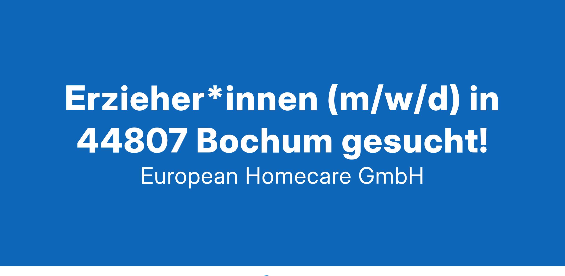 Die European Homecare GmbH übernimmt als soziales Dienstleistungsunternehmen, im Auftrag der öffentlichen Hand, seit über 30 Jahren in derzeit bundesweit rund 100 Einrichtungen mit insgesamt ca. 2.000 Mitarbeiter*innen Aufgaben im Bereich der Betreuung, Unterbringung und Versorgung von Asylbewerber*innen und Obdachlosen. Zur Unterstützung unseres Teams suchen wir zum nächstmöglichen Zeitpunkt mehrere Erzieher*innen (m/w/d), um Kinder aus unterschiedlichen Herkunftsländern in dem internen Kindergarten unserer Aufnahmeeinrichtung in Bochum zu betreuen.Ihre Aufgaben: Betreuung und Unterstützung der Asylbewerberkinder bei der Integration Spielerische Vermittlung der deutschen Sprache Förderung der Kreativität, Phantasie und Eigeninitiative der Kinder Vermittlung von Akzeptanz für Kinder anderer Kulturkreise und deren Wertvorstellungen Förderung sozialer und kommunikativer Fähigkeiten Unsere Anforderungen: staatlich anerkannte Erzieherinnen und Erzieher Hohes Maß an Verantwortungsbewusstsein sowie interkulturelle Kompetenz Sprachliche Kompetenzen, gerne Mehrsprachigkeit Belastbarkeit, Eigeninitiative, Einfühlungsvermögen, Flexibilität, sowie Motivation bzw. Leistungsbereitschaft Einwandfreies, erweitertes Führungszeugnis (Kostenübernahme erfolgt) Nachweis gemäß Masernschutzgesetz (Impfschutz/ Immunitätsnachweis) Zudem wäre es sehr wünschenswert, wenn Sie bereits an der Schulung "Ersthelfer am Kind" teilgenommen haben und Erfahrungen in der Betreuung von Kindern mit Migrationshintergrund mitbringen würden.Was wir bieten: leistungsgerechtes Gehalt sowie eine betriebliche Altersvorsorge eine anspruchs- sowie verantwortungsvolle Tätigkeit vielfältige Fort- und Weiterbildungsmöglichkeiten Coachings und Feedbackgespräche für Ihre individuelle und interkulturelle Entwicklung Vergünstigungen über Corporate Benefits Bei uns erwartet Sie eine abwechslungsreiche Tätigkeit in einem interkulturellen Arbeitsumfeld. Sie haben die Möglichkeit, sich in einer flachen hierarchischen Struktur individuell mit Ihren Kompetenzen einzubringen.KontaktSollten wir Ihr Interesse geweckt haben, freuen wir uns auf Ihre vollständigen und aussagekräftigen Bewerbungsunterlagen. Bei Rückfragen stehen wir Ihnen gerne unter bewerbung@eu-homecare.com oder 0201/4513660 zur Verfügung!