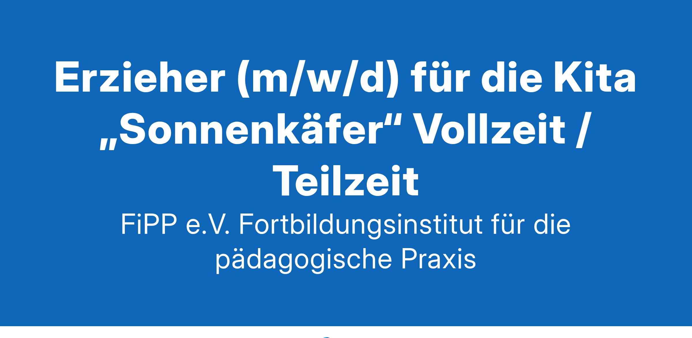 FiPP e.V. - Fortbildungsinstitut für die pädagogische Praxis - freier Träger der Kinder- & Jugendhilfe Berlin Du bist Erzieher*in mit Herz, förderst und begleitest gerne die Jüngsten in der Entwicklung? Dann verstärke unser Team in Teil- oder Vollzeit in Berlin (Neukölln) ab sofort als Erzieher (m/w/d) für die Kita „Sonnenkäfer“
