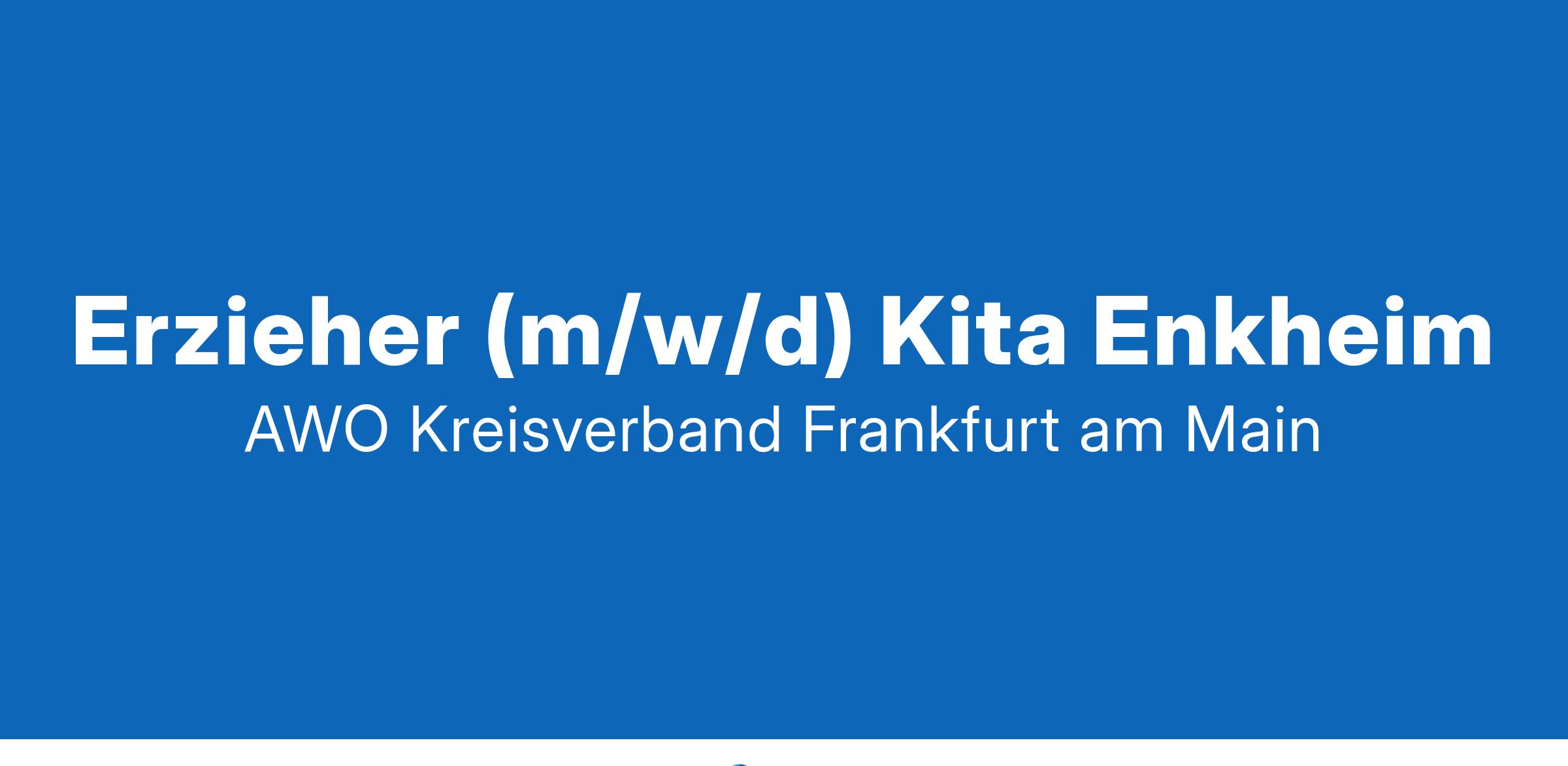 (VOLLZEIT 38,5 STD./WOCHE ODER TEILZEIT MIND. 30,0 STD./WOCHE- UNBEFRISTET) Du möchtest Kinder begeistern? Dann werde ein wichtiger Teil in unserem starken Team! Starte ab sofort in unserer AWO-Kita Enkheim durch. Fang gleich heute mit deiner Bewerbung an als Erzieher (m/w/d) Kita Enkheim