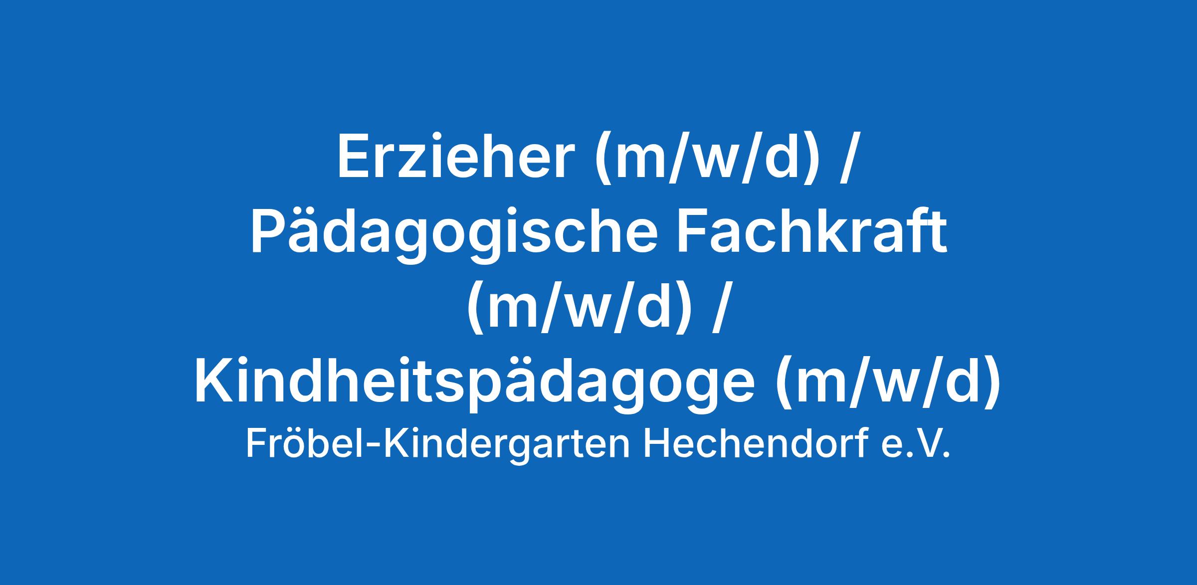 Erzieher (m/w/d) / Pädagogische Fachkraft (m/w/d) / Kindheitspädagoge (m/w/d)