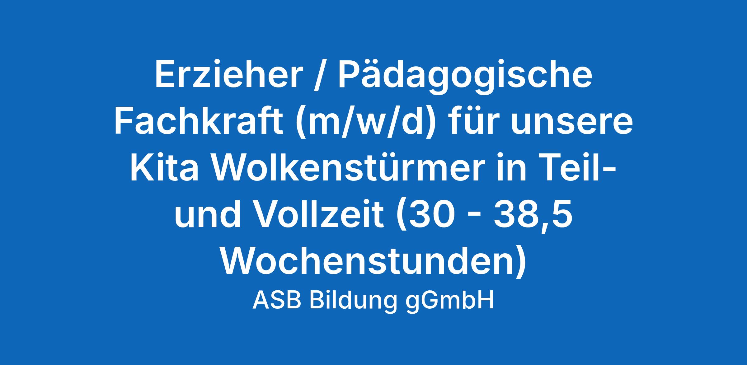 Erzieher / Pädagogische Fachkraft (m/w/d) für unsere Kita Wolkenstürmer in Teil- und Vollzeit (30 - 38,5 Wochenstunden)
