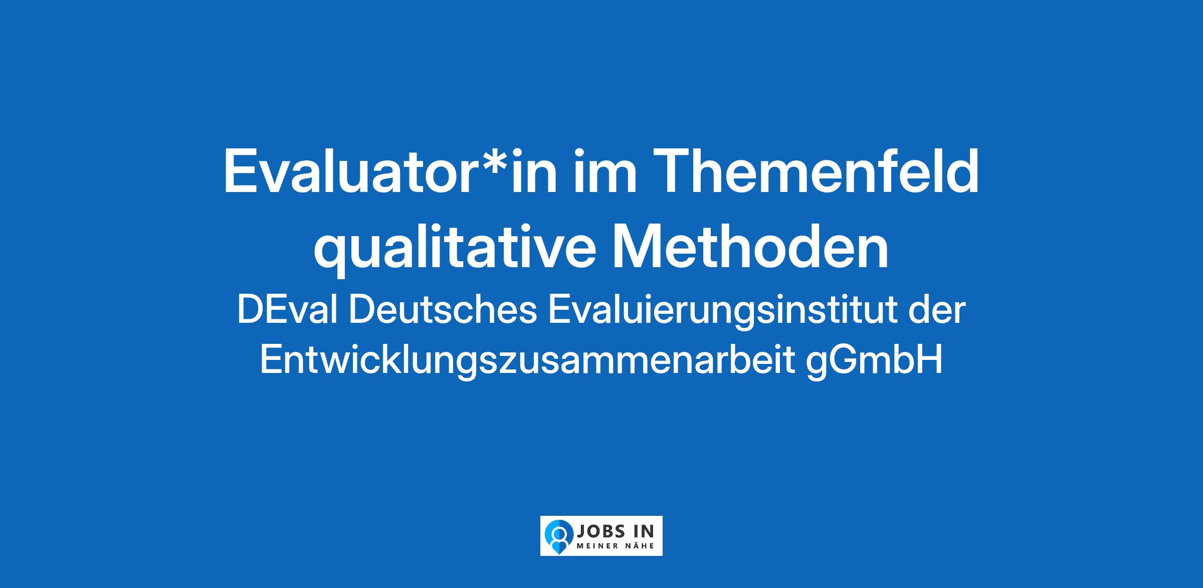 Das DEval ist ein unabhängiges Evaluierungsinstitut im Politikfeld der Entwicklungszusammenarbeit mit Sitz in Bonn. Mit unseren strategischen Evaluierungen tragen wir dazu bei, die deutsche Entwicklungszusammenarbeit wirksamer, effizienter und nachhaltiger zu gestalten. Für das Kompetenzzentrum M... Politikwissenschaft;Kulturwissenschaft;Englisch;Auswertung;Qualitätssicherung;Entwicklung;Wissenschaft;Maxqda;Soziologie;Deutsch;Psychologie;Promotionen;Wissensaustausch;Beratung Original Stellenanzeige auf StepStone.de – Jetzt Jobagent bei StepStone einrichten und Traumjob finden! https://bit.ly/2KOagYD Mehr Informationen zu Arbeitgebern, Gehaltsdaten und Karrieretipps finden Sie auf StepStone.de