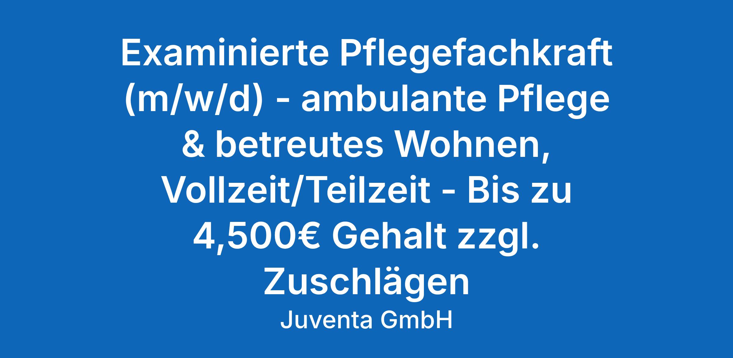 Examinierte Pflegefachkraft (m/w/d) - ambulante Pflege & betreutes Wohnen, Vollzeit/Teilzeit - Bis zu 4,500€ Gehalt zzgl. Zuschlägen