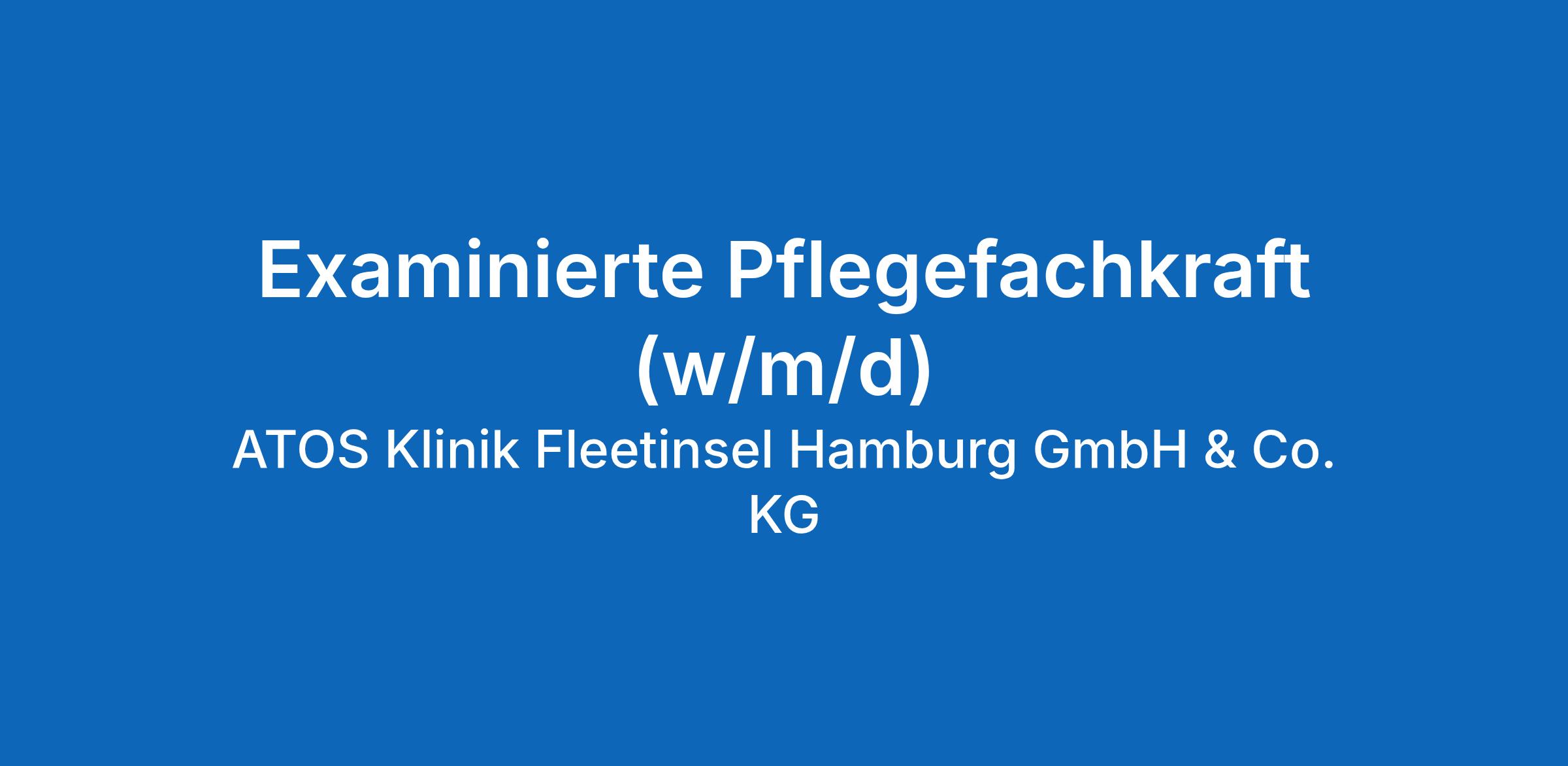 Zum nächstmöglichen Zeitpunkt suchen wir für die ATOS Klinik Fleetinsel Hamburg GmbH & Co. KG eine/n