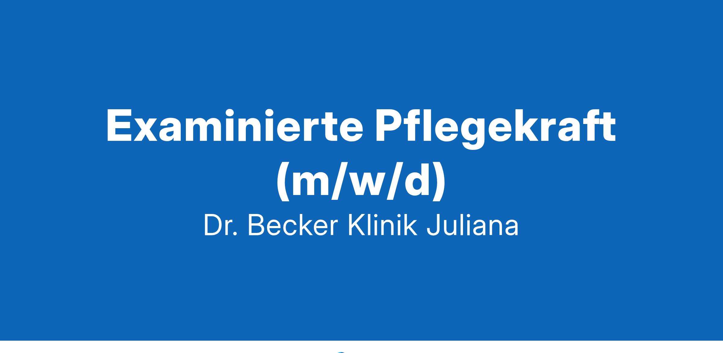 Examinierte Pflegekraft (m/w/d)Jetzt bewerbenHerzlich willkommen!Warum Sie als...Examinierte Pflegekraft (m/w/d)... in der Dr. Becker Klinik Juliana, Wuppertal, mit 120 Betten für psychosomatische Rehabilitation arbeiten sollten! *Abwechslung:➔ Breites Patientenklientel: Sie arbeiten mit Patient:innen verschiedenster psychosomatischer Krankheitsbilder, die sich in unterschiedlichen Phasen ihrer Erkrankung befinden. Sie unterstützen sie individuell dabei, wieder zu mehr Selbstfürsorge und einer Alltagsstruktur zurückzukommen;➔ Ganzheitliches Setting: Im Team besprechen Sie passende und nachhaltige Behandlungswege für Ihre Patient:innen und stimmen die pflegerischen Umsetzungsmöglichkeiten darauf ab. Unter Berücksichtigung von Begleiterkrankungen erarbeiten Sie mit den Patient:innen unterstützende Maßnahmen und helfen ihnen, ihre Rehaziele zu erreichen.Zeit und interdisziplinäre Zusammenarbeit:➔ Keine OP's, wenig Notfälle! Bei uns sind Ihre Arbeitszeiten planbar.➔ flexible Arbeitszeitmodelle in Voll- und Teilzeit;➔ 30 Urlaubstage;➔ Intensives Pflegeverhältnis: Sie begleiten Ihre Patient:innen über mehrere Wochen; deren Erfolge erleben Sie hautnah mit! Sie haben Zeit für Gespräche mit den Patient:innen und bemerken Veränderungen frühzeitig;➔ Kollegialer, bereichernder Austausch in regelmäßigen Teambesprechungen; mit Kolleg:innen anderer Abteilungen können sich jederzeit beraten, z. B. zum Thema Medikation oder Anpassung der Therapien.Wertschätzung➔ Faire Bezahlung; Jahressonderzahlungen, Qualifikationszuschläge, Schichtzulage, Boni; Zuschüsse zur Altersvorsorge;➔ Finanzielle und zeitliche Unterstützung bei Fortbildungen und Zusatzqualifikationen (z. B. Akupunktur, therapeutisches Bogenschießen);➔ Regelmäßige Supervision;➔ Jährliche Personalentwicklungsgespräche;➔ Systematische Einarbeitung mit festem Ablauf im Mentorenprogramm;➔ Ein großzügiges und unbürokratisches Betriebliches Gesundheitsmanagement, u.a. kostenfreie Nutzung von hauseigenem Schwimmbad, Sauna und Fitnessraum, sowie tolle Prämien, Bike-Leasing und eine Mitgliedschaft bei Hansefit;➔ Regelmäßige Teamevents um unsere gemeinsamen Erfolge zu feiern;➔ Bei Krisen im persönlichen Umfeld oder einfach auch nur bei praktischen Fragen zum Mietverhältnis oder einer Versicherung - wir unterstützen Sie mit einem externen Beratungsdienst, der sich kostenlos und anonym Ihren Fragen annimmt.* Für diese Stellenanzeige haben wir die Pflegekräfte der Dr. Becker Klinikgruppe gefragt, was das Beste an ihrem Job bei uns ist.PROFIL UND KONTAKTNehmen Sie Kontakt zu uns auf, wenn Sie eine abgeschlossene Ausbildung als Gesundheits- und Krankenpfleger:in haben. Gerne können Sie bei uns hospitieren und selbst erleben, wie gut das Betriebsklima bei uns ist. Wir freuen uns auf Sie!