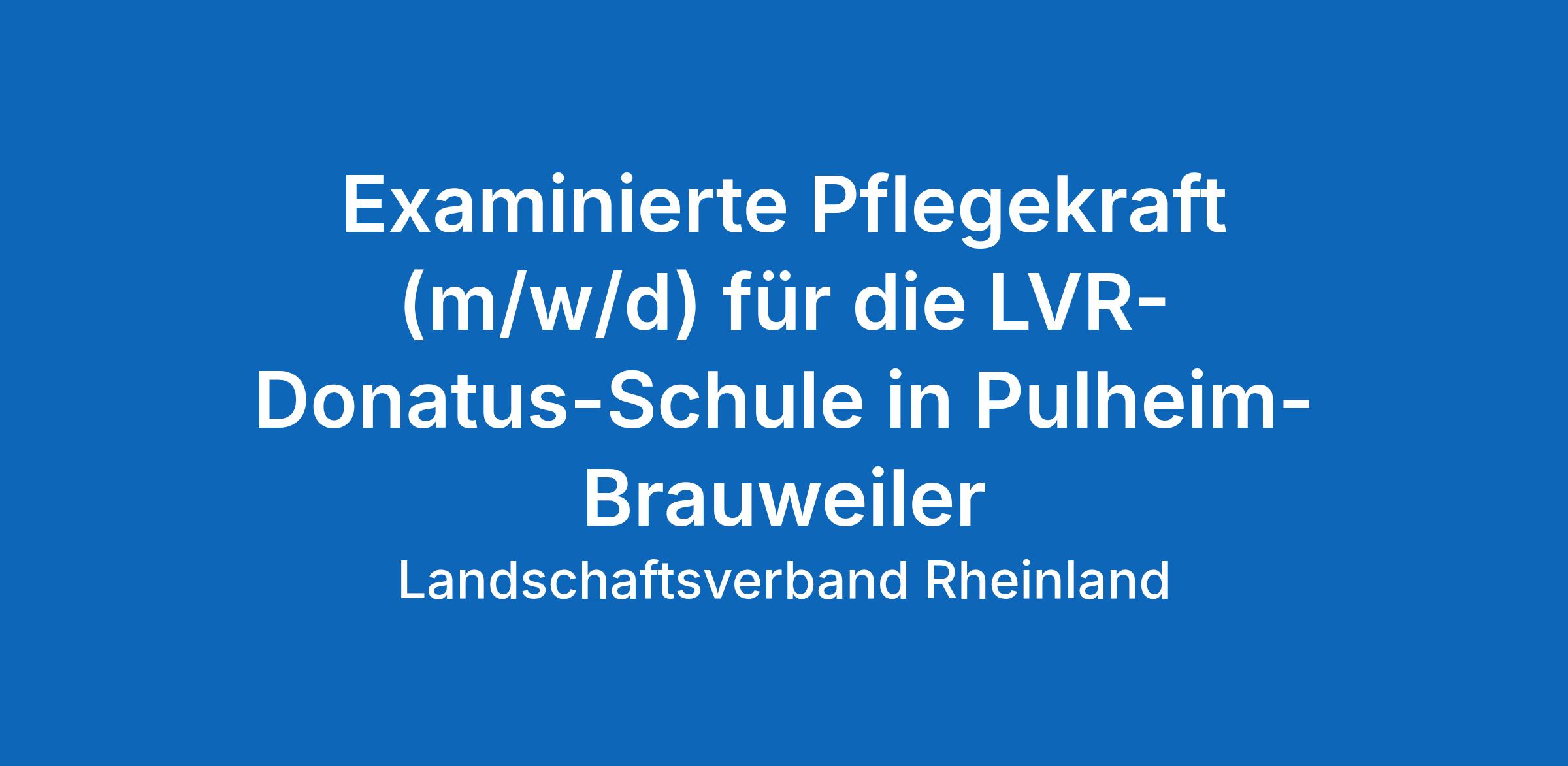 Verstärken Sie das Pflegeteam der LVR-Donatus-Schule in Pulheim-Brauweiler, wir freuen uns auf Sie!