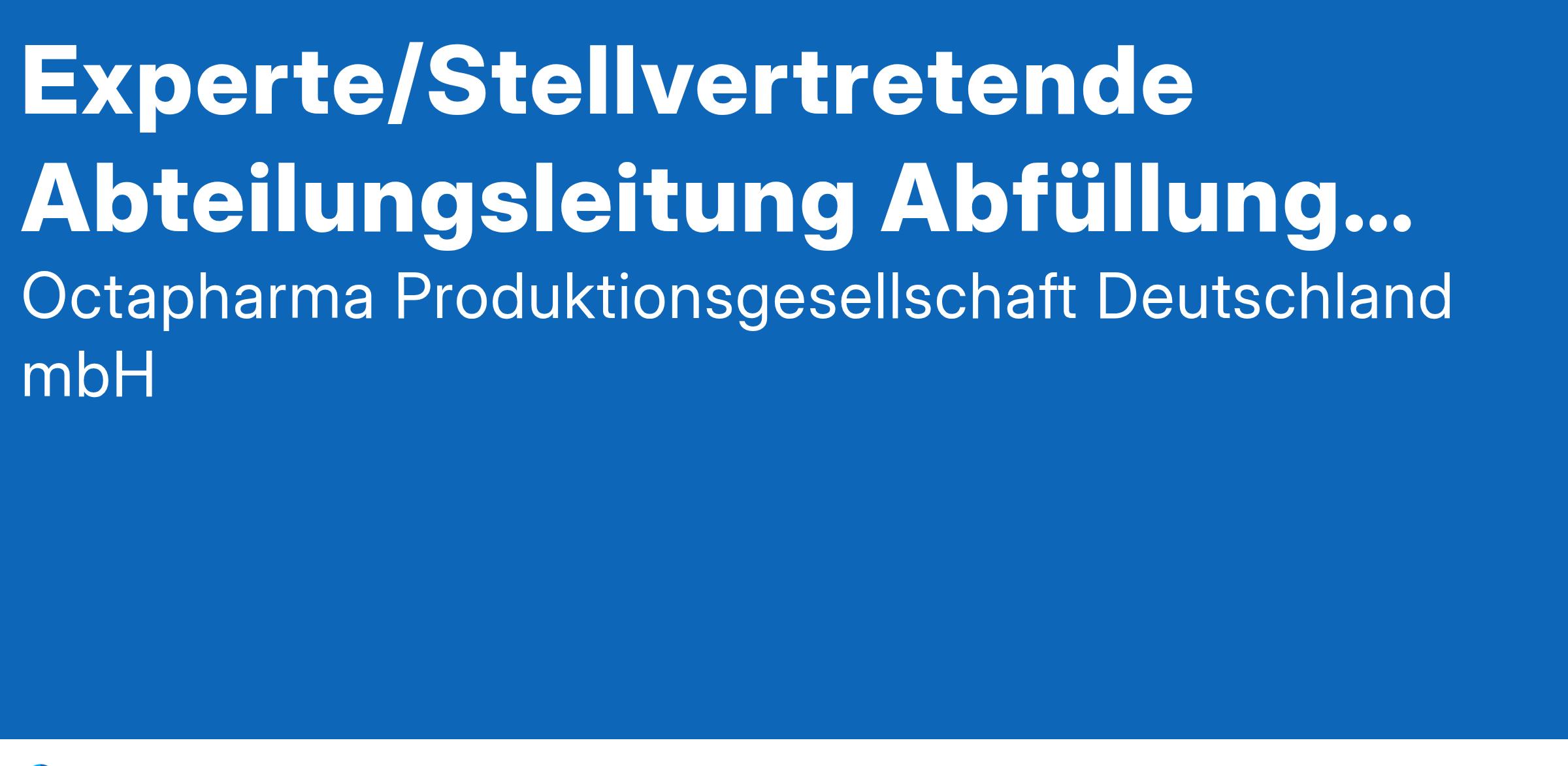 Experte/Stellvertretende Abteilungsleitung Abfüllung (m/w/d)