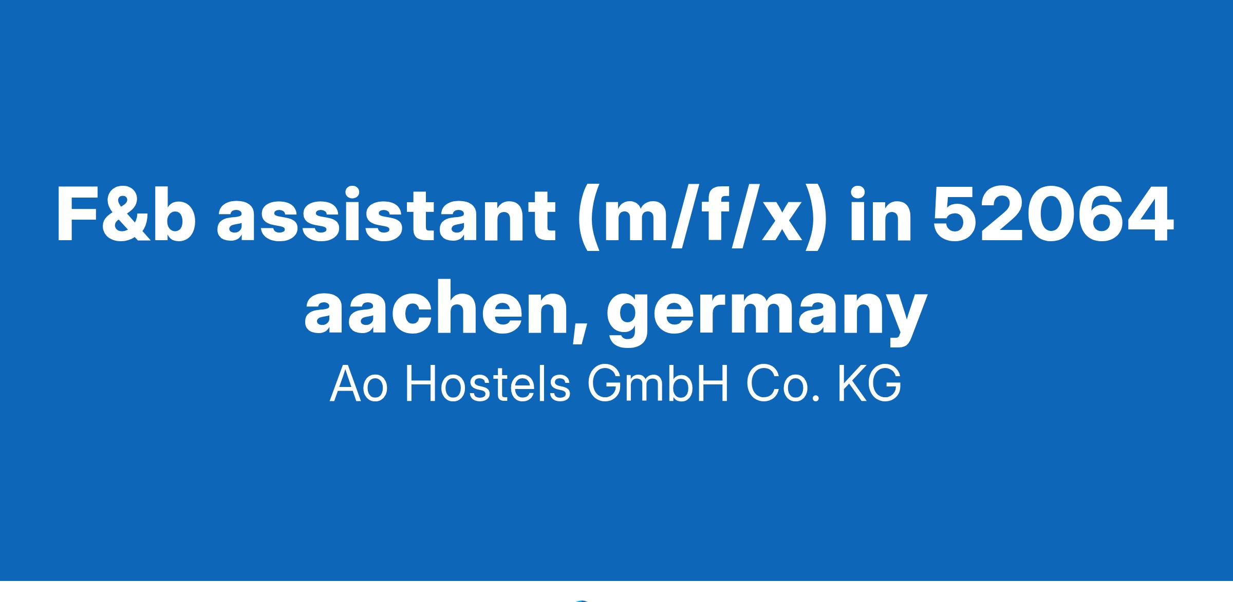 F& B Assistant (m/f/x)as of now - full time - in 52064 Aachen, GermanyTo support our team at a&o Hostel Aachen , we are looking for YOU - a hard-working and independent F& B Assistant (m/f/x).We are also happy to consider applicants with knowledge from/as: bakery, bake shop, gas station shop, Mc Donald, Subway, barista, cook, kitchen assistants, takeaway, bar staff, snack bar or career changers who enjoy giving our guests a special experience.OUR OFFER75% - 90% discount on private accommodation in all a&o hostels (depending on company affiliation)attractive corporate benefits such as discounted leisure activities and eventssubsidized language coursesSubsidized company pension scheme100% coverage of your public transport costs (job ticket)support for your further education in the form of various trainingsMental Health: We offer you free mental health coaching from an independent partner who will support you with professional, private and health-related challengesOf course we provide drinks, fruit and vegetables on a daily basis – and as hostel staff you can join your team for the meals served at the buffetSeniority bonuses in the form of cash bonuses and additional vacation daysYOUR JOBYou will be employed in the in kitchen and bar and will actively participate in the day business; including the daily cleaning workPreparation and taking care of the breakfast-buffet are also amongst your tasksImposing quality- and HACCP-standards in kitchen and bar is your responsibilityPantry and stocktaking are your responsibility: you check food- and beverage-storage and inventory and order new products if necessaryYou put the goods away on deliveryYou draw up the menu for our dinner-buffetYou supervise scheduling for kitchen- and bar-crewYOUR PROFILEReliability, quality awareness and flexibility are only some of your core characteristicsRegarding your work, you show a strong willingness to commit and to work independentlyYou are a hands-on doer who tackles and spreads good spirits even in stressful situationsSome experience in gastronomy or hospitality are desirable, but not a mustYour German and English skills are good, knowledge of other languages is an advantageAre you that good-humored, service minded and hospitable person we are looking for? We are very happy to receive your application (resume).Apply now!Federico Di Bona General ManagerMore about a&o hostels: As Europe's largest Hostel chain a&o is simple, diverse and always with a smile. We push our mission "everyone can travel" through affordable prices and constant growth. Since its foundation, a&o Hostels has seen itself as an employer whose teams are formed regardless of origin, gender, sexual orientation, religion or ethnicity.