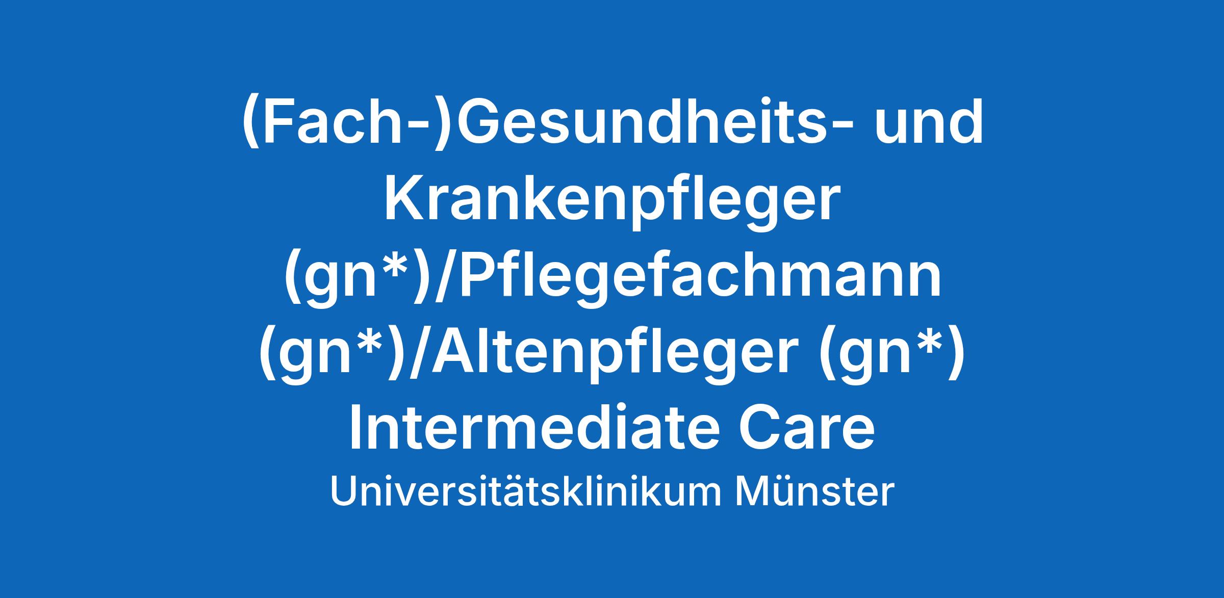 (Fach-)Gesundheits- und Krankenpfleger (gn*)/Pflegefachmann (gn*)/Altenpfleger (gn*) Intermediate Care