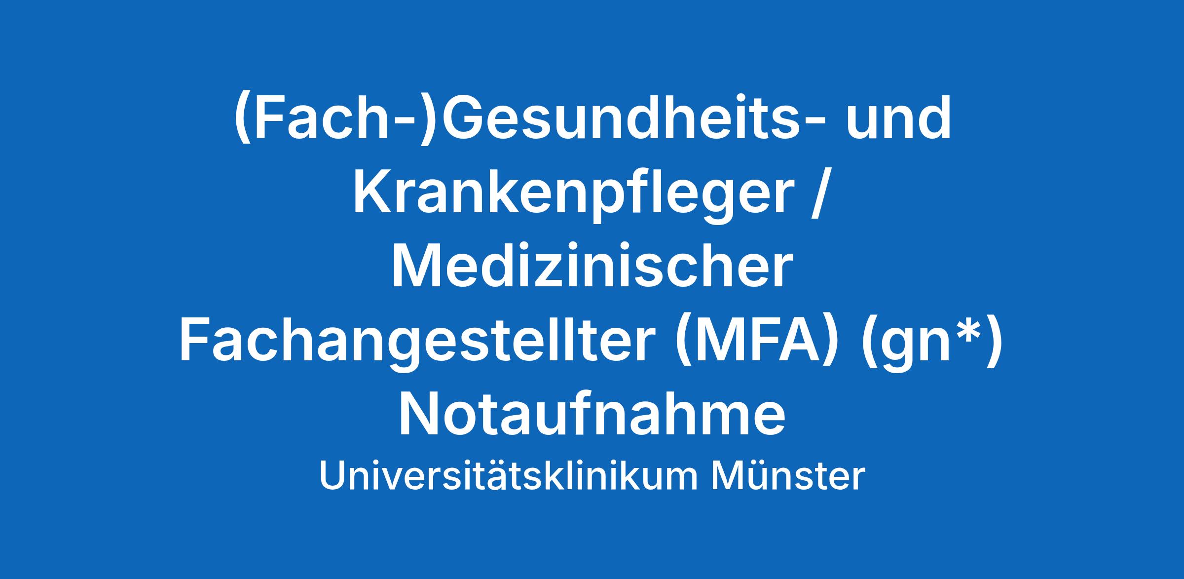 (Fach-)Gesundheits- und Krankenpfleger / Medizinischer Fachangestellter (MFA) (gn*) Notaufnahme