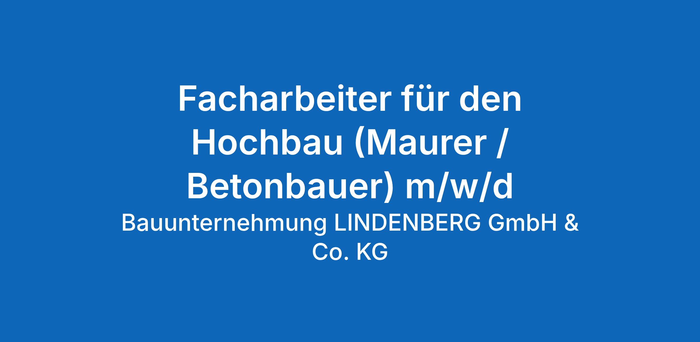 Facharbeiter für den Hochbau (Maurer / Betonbauer) m/w/d
