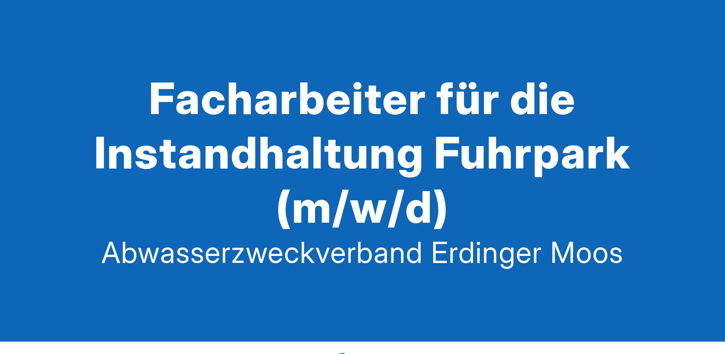 Abwasserzweckverband Erdinger Moos Moderne Technik. Sauberes Wasser. Der Abwasserzweckverband Erdinger Moos mit Sitz in Eitting entsorgt das Abwasser der Großen Kreisstadt Erding sowie weiterer 12 Kommunen und der Flughafen München GmbH. Wir suchen zum nächstmöglichen Zeitpunkt eine/n Facharbeiter für die Instandhaltung Fuhrpark (m/w/d) Ihre Aufgaben: Selbstständige Wartung und Instandsetzung des AZV-Fuhrparks (15 Fahrzeuge/Kastenwagen bis 5,5 to plus 4 Sonderfahrzeuge) Selbstständige Wartung und Instandsetzung von mechanischen Anlagen im Bereich des Verbandsklärwerks Wartung und Instandsetzung des Blockheizkraftwerks Austausch bestehender und Einbau von neuen Aggregaten Ihre Qualifikation: Abgeschlossene Berufsausbildung als Kfz-Mechatroniker, Metallfacharbeiter oder vergleichbare Ausbildung Selbstständiges Arbeiten Team- und Kommunikationsfähigkeit Gute technische Auffassungsgabe Fahrerlaubnis der Führerscheinklasse B, wünschenswert C1/CE Unsere Benefits: Ein Arbeitsvertrag mit 39-h-Woche Attraktive Vergütung nach TVöD inklusive Großraumzulage und Fahrtkostenzuschuss Weihnachtsgeld in Höhe von 84,51 % des Monatsgehalts Jährliche Leistungszulage Betriebsrente 30 Tage Urlaub (zzgl. 24. und 31. Dezember) Gute-Work-Life-Balance Attraktives und modernes Arbeitsumfeld Vergünstigte Lademöglichkeit für Elektrofahrzeuge Ihr persönlicher Ansprechpartner: Herr Pfanzelt Tel.: 08122/498-710 Interesse geweckt? Dann richten Sie Ihre schriftliche Bewerbung per E-Mail (nur eine Anlage im PDF-Format) bis spätestens 16.02.2025 an: bewerbung@azv-em.de Weitere Informationen unter: www.azv-em.de