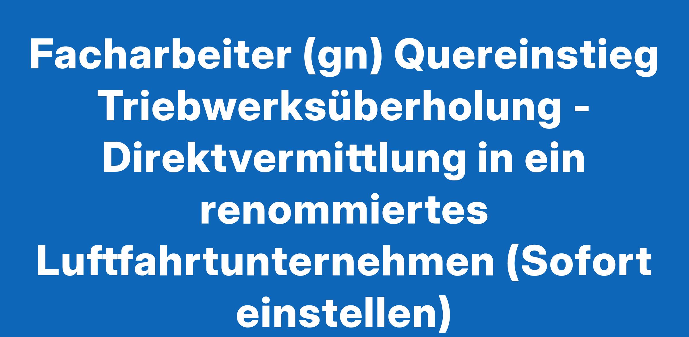 Facharbeiter (gn) Quereinstieg Triebwerksüberholung - Direktvermittlung in ein renommiertes Luftfahrtunternehmen (Sofort einstellen)