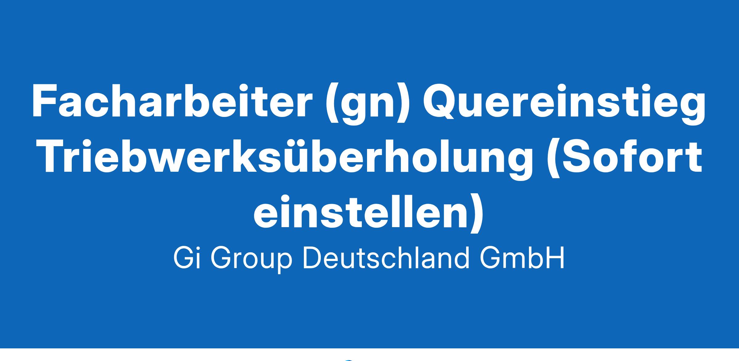 Facharbeiter (gn) Quereinstieg Triebwerke ab sofort in Vollzeit in Hamburg in der Direktvermittlung Die Gi Group ist ein international agierender Personaldienstleister mit mehr als 500 Standorten in 40 Ländern. Unser Kunde ist ein renommiertes und zukunftsorientiertes Unternehmen aus der Luftfahrt.  Deine Aufgaben Demontage und Montage von Triebwerken und Triebwerksmodulen Mechanische Reparaturarbeiten von Triebwerkseinzelteilen, auch im Team, durchführen Triebwerke sowie deren Bauteile bereitstellen und befunden  Dein Profil Eine abgeschlossene Berufsausbildung in einem metallverarbeitenden Beruf, z.B. Kfz-Mechatroniker, Anlagenmechaniker, Industriemechaniker, Feinwerkmechaniker, Konstruktionsmechaniker, Werkzeugmacher, Metallbauer oder eine abgeschlossene Berufsausbildung in einem anderen handwerklichen Beruf, z.B. Holzhandwerk, Medizintechnik etc. Englischkenntnisse wünschenswert Bereitschaft zum Schichtdienst (verschiedene Schichtmodelle mit Zulagen) Das bietet der Kunde  Urlaubs- und Weihnachtsgeld sowie eine Gewinnbeteiligung, 30 Tage Urlaub  Flugvergünstigungen, Einkaufsrabatte in Geschäften und Jobrad-Leasing  Kostenloses Parken, betriebliche Altersvorsorge und Verpflegungszuschuss für die Kantine  Fitness- und Sportangebote, Jobticket/Zuschuss ÖPNV Und vieles mehr  Deine Bewerbung Für Deine Bewerbung als Facharbeiter im Quereinstieg in der Triebwerksüberholung klicke bitte einfach auf „Jetzt bewerben“. Dort kannst Du Deine Kontaktdaten eingeben sowie Deinen Lebenslauf und Deine Bewerbungsunterlagen hochladen. Du benötigst dafür nur ca. 1 Minute. Dein zuständiger Personaldisponent wird sich bei Dir schnellstmöglich melden. Gerne kannst Du uns auch Deine Bewerbungsunterlagen per E-Mail zusenden. Wir freuen uns auf Deine Bewerbung als Facharbeiter Quereinstieg in der Triebwerksüberholung! Unsere Stellenangebote richten sich an Arbeitssuchende jeglichen Geschlechts. (gn) = geschlechtsneutral. Kontakt Gi Group Recruiting Team