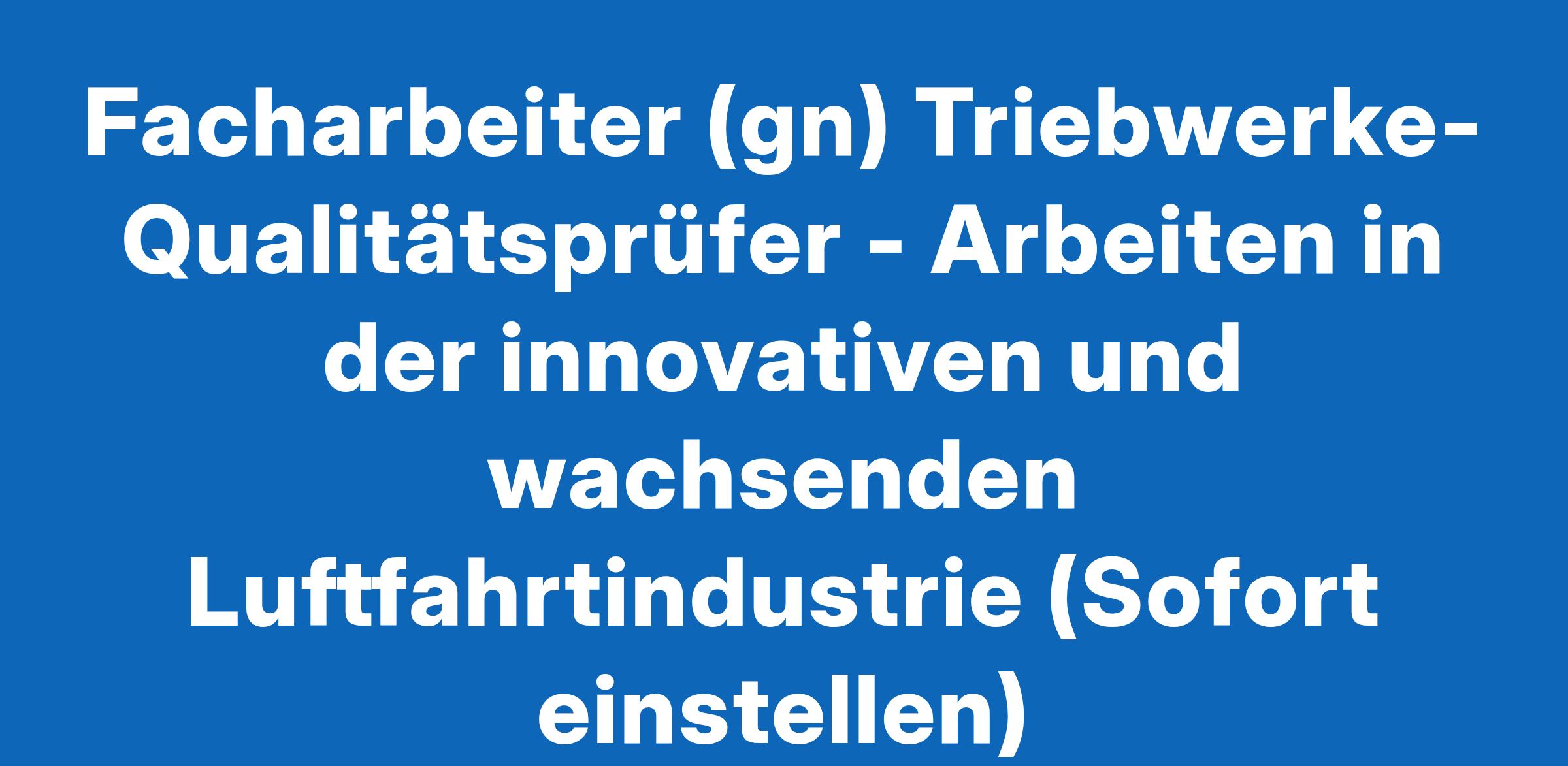 Facharbeiter (gn) Triebwerke-Qualitätsprüfer - Arbeiten in der innovativen und wachsenden Luftfahrtindustrie (Sofort einstellen)