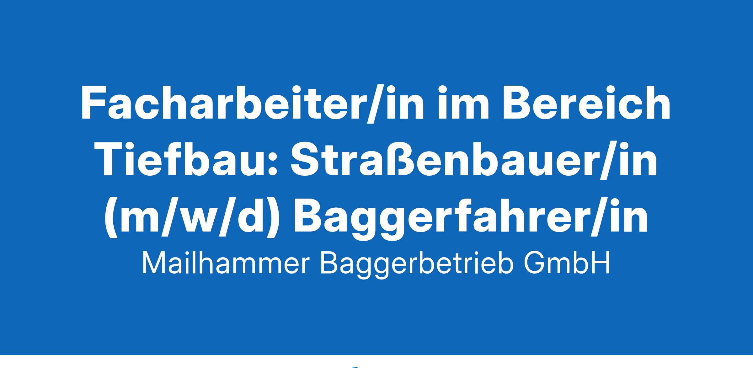 Die Firma Mailhammer bietet Ihnen eine zukunftsorientierte Tätigkeit mit der Möglichkeit sich in unserem Unternehmen einzubringen und beruflich weiter zu entwickeln. Facharbeiter/in im Bereich Tiefbau: Straßenbauer/in (m/w/d) Baggerfahrer/in Ihre Aufgaben: Tiefbauarbeiten Arbeit mit technischen Maschinen, Geräten und Anlagen (z.B. Bagger und Verdichtungsgeräte) Verantwortung für die Pflege, Wartung und ordnungsgemäße Bedienung des Fahrzeugs Ihr Profil: Berufsausbildung im Baugewerbe oder mehrjährige praktische Erfahrung als Baggerfahrer Deutschkenntnisse und ein Führerschein für PKW ist wünschenswert Selbstständige Arbeitsweise, Engagement und Einsatzbereitschaft Wir bieten: Überdurchschnittliche Bezahlung Interessante Projekte Flache Hierarchien Top Ausstattung an Maschinen und Werkzeugen Ein abwechslungs- und umfangreiches Aufgabenfeld Beste Karrierechancen auf einem dynamischen und zukunftssicheren Markt Zuschläge für Überstunden, Sonntags-, Feiertags- und Nachtarbeit Verpflegungszuschuss Fortbildungsmöglichkeiten Sozialleistungen wie Betriebliche Altersvorsorge, Vermögenswirksame Leistungen Möglichkeiten für ein Job Rad Gutes Betriebsklima in einem jungen Team Teamevents Einfach Kontakt aufnehmen – gerne auch ohne Anschreiben & Lebenslauf.