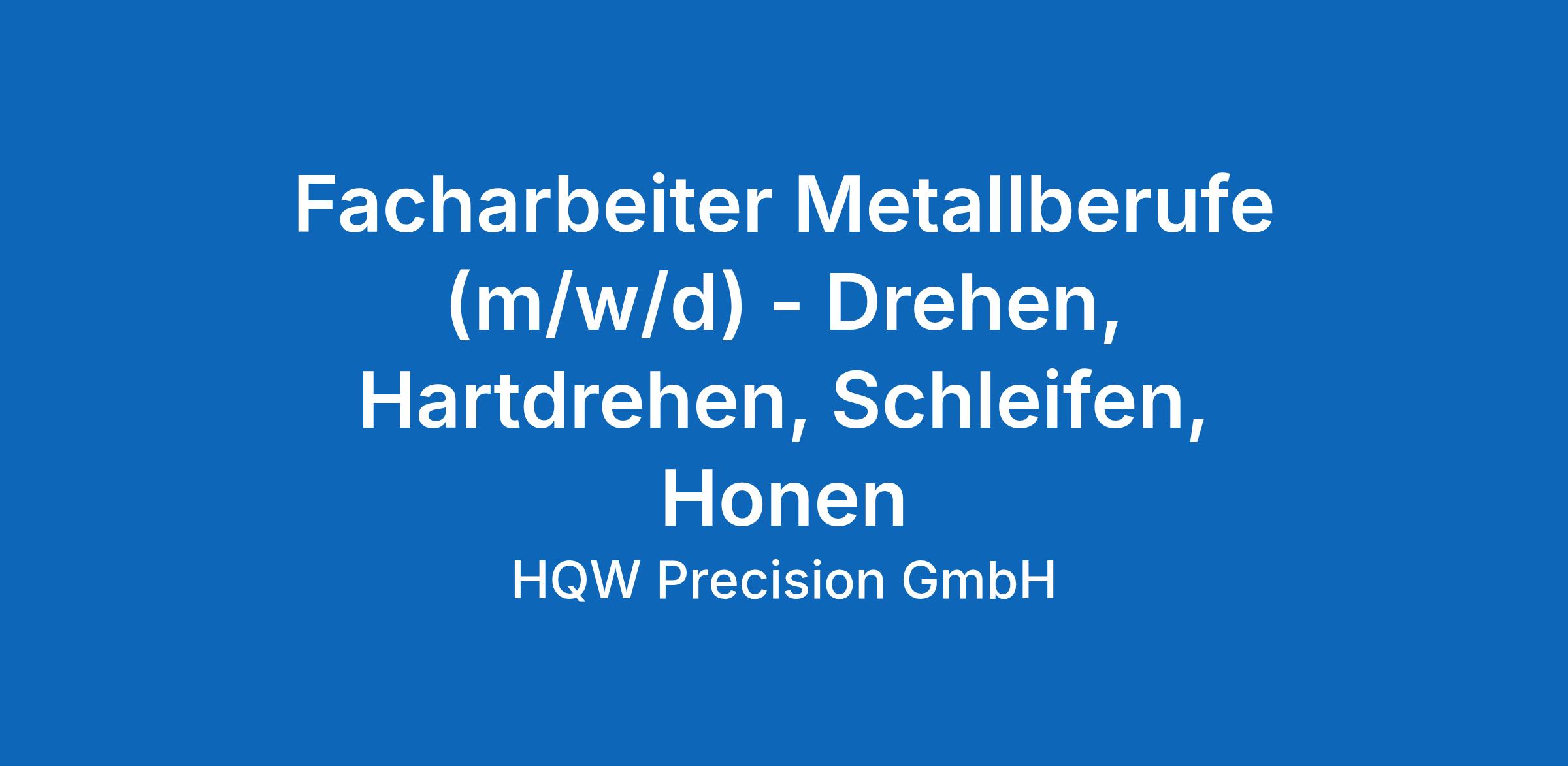 Facharbeiter Metallberufe (m/w/d) – Drehen, Hartdrehen, Schleifen, Honen