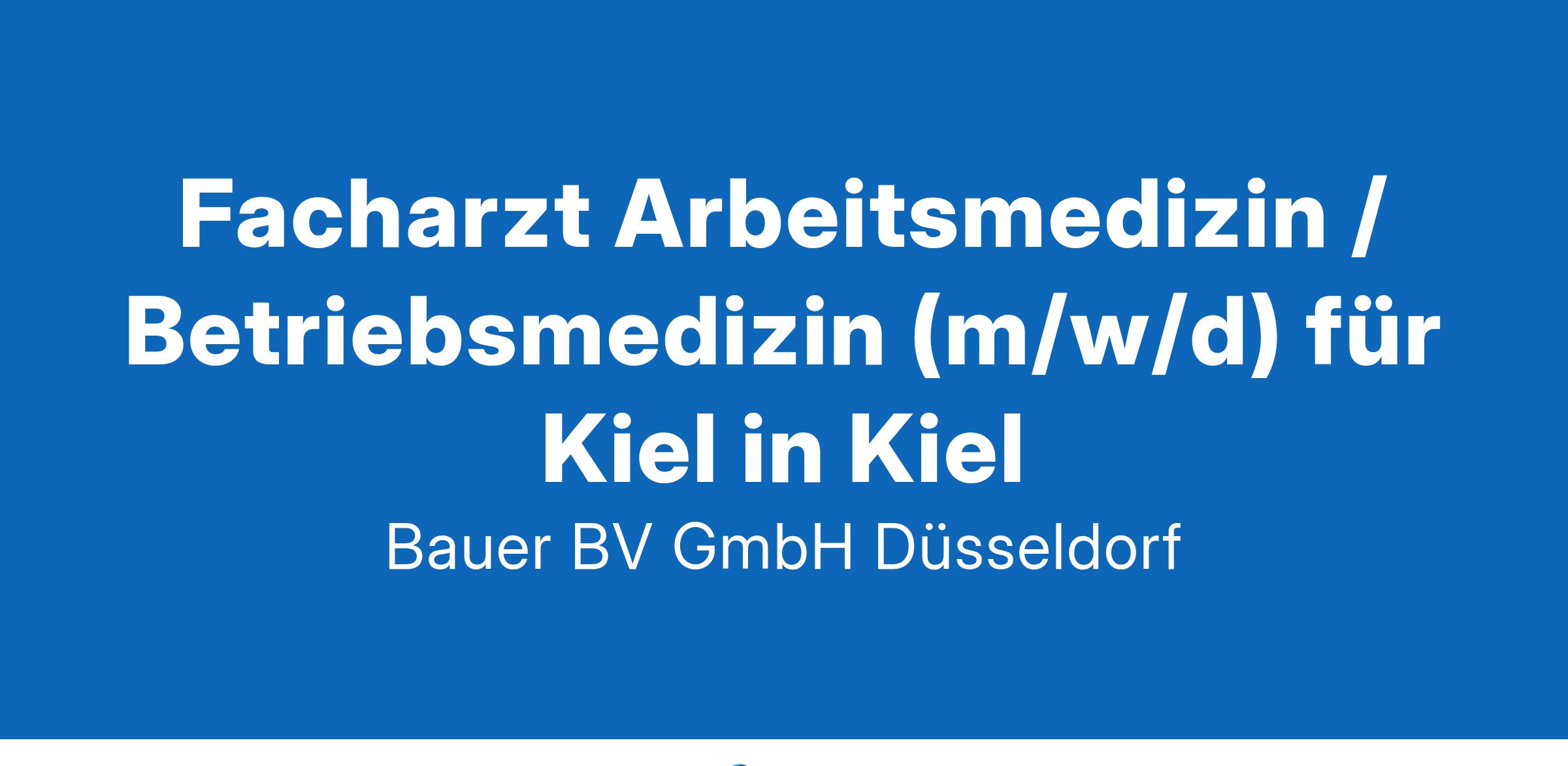 Anstellungsart(en): VollzeitIhr neuer Arbeitsplatz:Großer, bundesweit tätiger Dienstleister in den Bereichen Arbeitsmedizin, Arbeitssicherheit und Arbeitspsychologie, der seinen Kunden flexible und moderne arbeitsmedizinische und sicherheitstechnische Lösungen anbietet. Für den Ausbau des Standortes Kiel suchen wir zum nächstmöglichen Zeitpunkt einen Facharzt (m/w/d) für Arbeitsmedizin bzw. Betriebsmedizin.Ihre Vorteile:Abwechslungsreiche TätigkeitDurchführung arbeitsmedizinischer Untersuchungen bei KundenbetriebenBegehen der Betriebsstätten & Erstellung von GefährdungsbeurteilungenBeratung der Kunden zu den Themen Reisemedizin, Mutterschutz usw.Keine VertriebstätigkeitenFreundliches und engagiertes TeamFamilienfreundliche Arbeitszeiten von Montag bis FreitagAttraktive VergütungUnbefristete Festanstellung in VollzeitIhr Profil:Facharzt (m/w/d) für Arbeitsmedizin bzw.Arzt (m/w/d) mit Zusatzbezeichnung BetriebsmedizinPKW-FührerscheinIhr Ansprechpartner:Bauer B+V Personalberatung