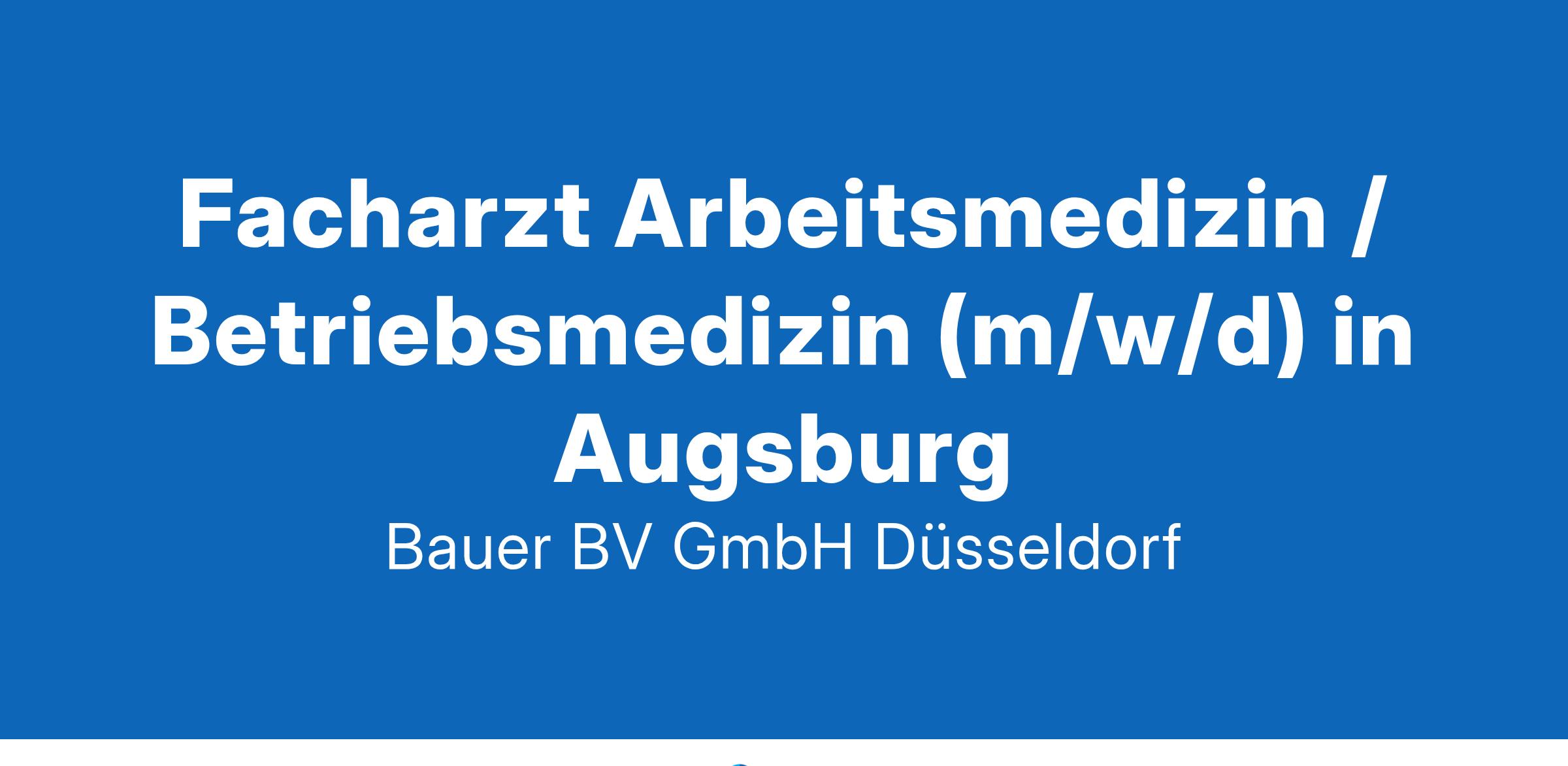 Anstellungsart(en): Teilzeit, VollzeitIhr neuer Arbeitsplatz:Unser Kunde ist Marktführer in der Arbeitsmedizin, Arbeitssicherheit und im Gesundheitsmanagement. Für das Gesundheitszentrum in Augsburg suchen wir zum nächstmöglichen Zeitpunkt einen Facharzt (m/w/d) für die Bereiche Arbeitsmedizin und Betriebsmedizin.Aufgabenspektrum:Durchführung arbeitsmedizinischer Untersuchungenim Gesundheitszentrumbei Kundenbetrieben vor OrtInterne und externe BeratungstätigkeitIhre Vorteile:Ausschließlich präventive TätigkeitenBreites AufgabenspektrumFreundliches und engagiertes TeamFamilienfreundliche Arbeitszeiten ohne DiensteAttraktive VergütungUnbefristete Festanstellung in Voll- oder TeilzeitIhr Profil:Facharzt (m/w/d) für Arbeitsmedizin bzw.Arzt (m/w/d) mit Zusatzbezeichnung BetriebsmedizinIhr Ansprechpartner:Bauer B+V Personalberatung