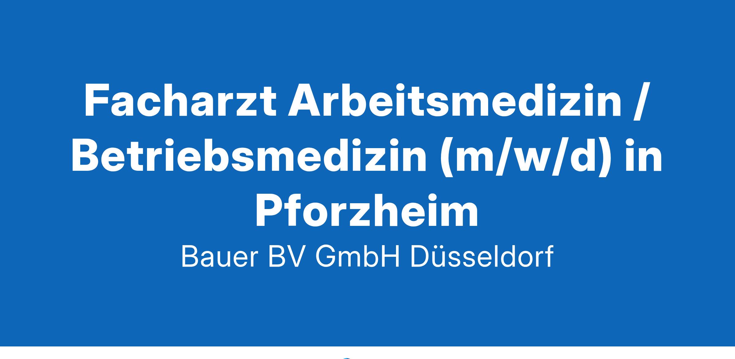 Anstellungsart(en): Teilzeit, VollzeitIhr neuer Arbeitsplatz:Unser Kunde ist Marktführer in der Arbeitsmedizin, Arbeitssicherheit und im Gesundheitsmanagement. Für das Gesundheitszentrum in Pforzheim suchen wir zum nächstmöglichen Zeitpunkt einen Facharzt (m/w/d) für die Bereiche Arbeitsmedizin und Betriebsmedizin.Aufgabenspektrum:Durchführung arbeitsmedizinischer Untersuchungenim Gesundheitszentrumbei Kundenbetrieben vor OrtInterne und externe BeratungstätigkeitIhre Vorteile:Ausschließlich präventive TätigkeitenBreites AufgabenspektrumFreundliches und engagiertes TeamFamilienfreundliche Arbeitszeiten ohne DiensteAttraktive VergütungUnbefristete Festanstellung in Voll- oder TeilzeitIhr Profil:Facharzt (m/w/d) für Arbeitsmedizin bzw.Arzt (m/w/d) mit Zusatzbezeichnung BetriebsmedizinIhr Ansprechpartner:Bauer B+V Personalberatung