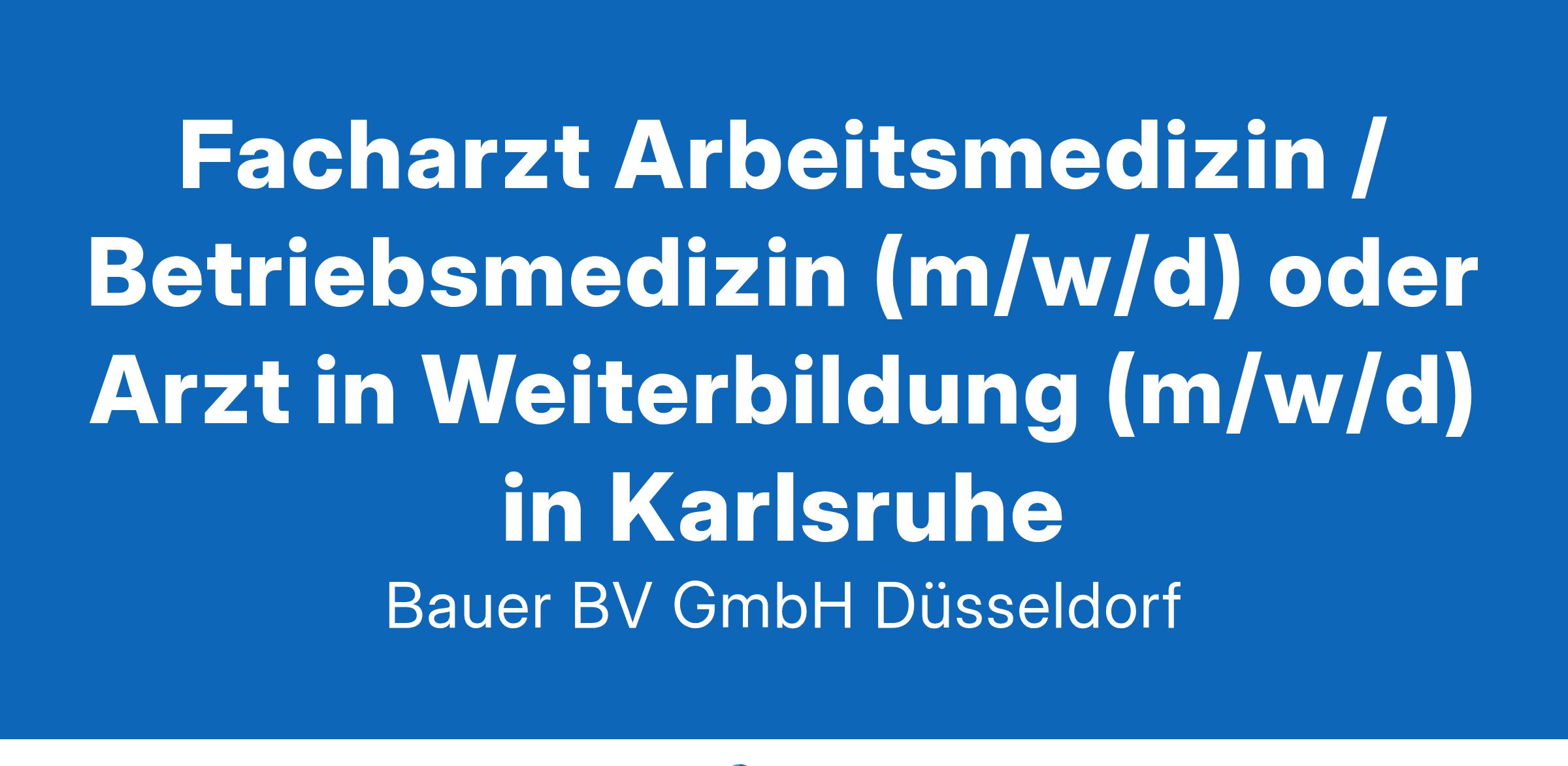 Anstellungsart(en): Teilzeit, VollzeitIhr neuer Arbeitsplatz:Großer, bundesweit führender Anbieter im betrieblichen Gesundheits- und Leistungsfähigkeitsmanagement. Für den Standort Karlsruhe suchen wir zum nächstmöglichen Zeitpunkt einen Facharzt (m/w/d) für Arbeitsmedizin bzw. Betriebsmedizin oder gerne auch einen Assistenzarzt (m/w/d).Ihre Vorteile:Attraktive KarrieremöglichkeitenAbwechslungsreiche TätigkeitAusschließlich präventive TätigkeitBetreuung und Beratung der Kunden zu arbeitsmedizinischen ThemenKeine VertriebstätigkeitenFlexiblen ArbeitszeitenBesonders wertschätzenden AtmosphäreFreundliches und engagiertes TeamAttraktive VergütungDienstwagen, auch zur privaten NutzungUnbefristete Festanstellung in Voll- oder TeilzeitIhr Profil:Facharzt (m/w/d) für Arbeitsmedizin / Betriebsmedizin bzw.Arzt (m/w/d) mit 24 Monaten Erfahrung in den Gebieten der unmittelbaren PatientenversorgungPKW-FührerscheinIhr Ansprechpartner:Bauer B+V Personalberatung