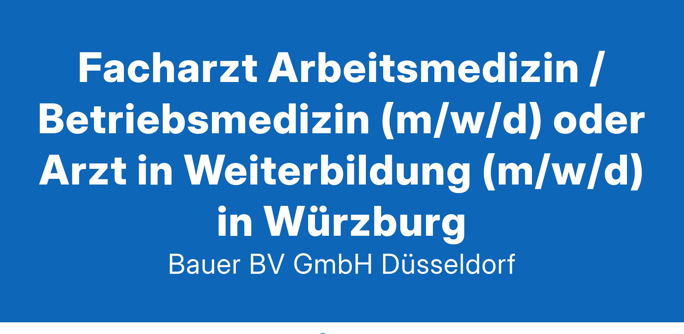 Facharzt Arbeitsmedizin / Betriebsmedizin (m/w/d) oder Arzt in Weiterbildung (m/w/d) in Würzburg