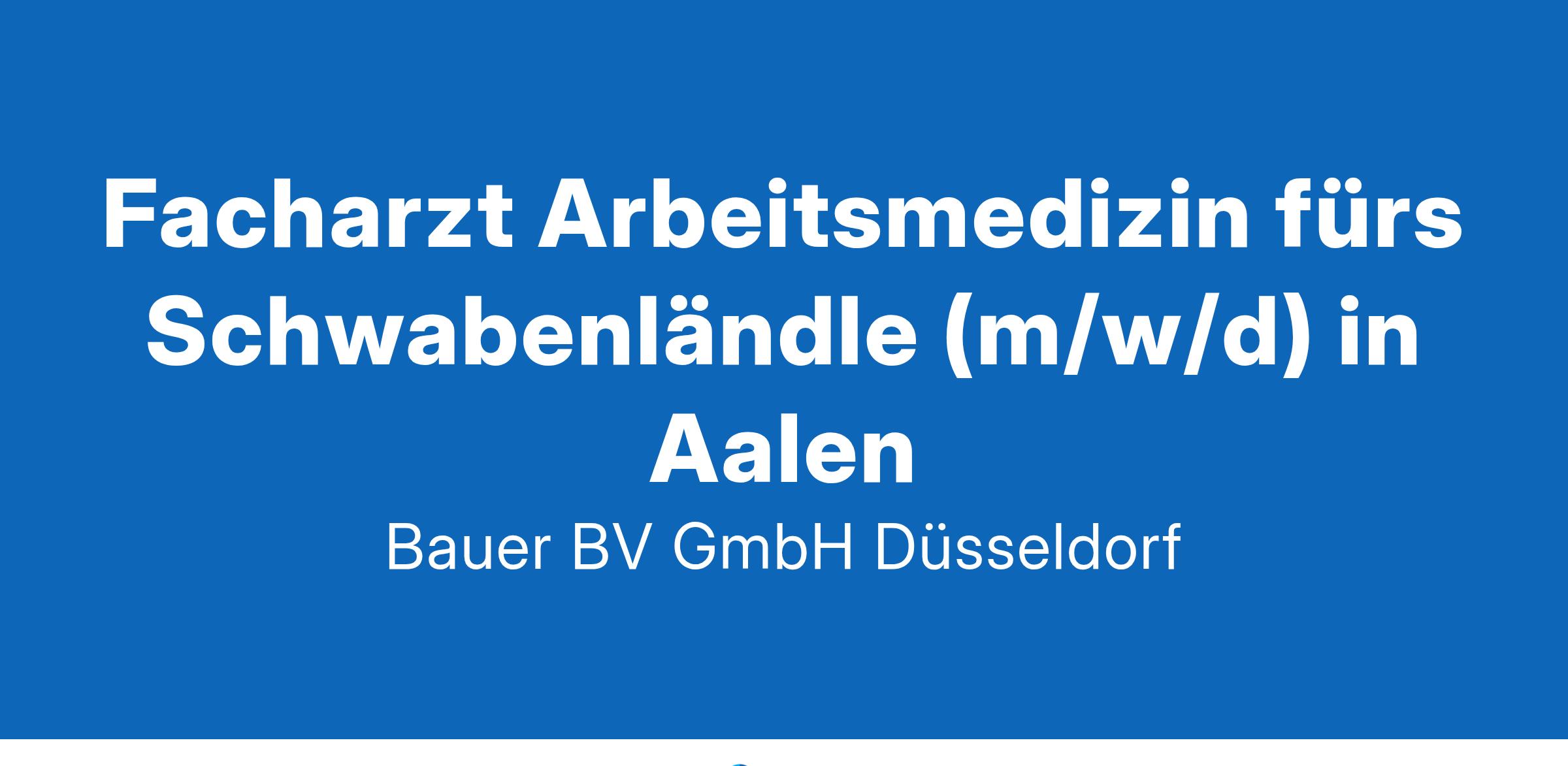 Facharzt Arbeitsmedizin fürs Schwabenländle (m/w/d)Stellen-ID: 2360