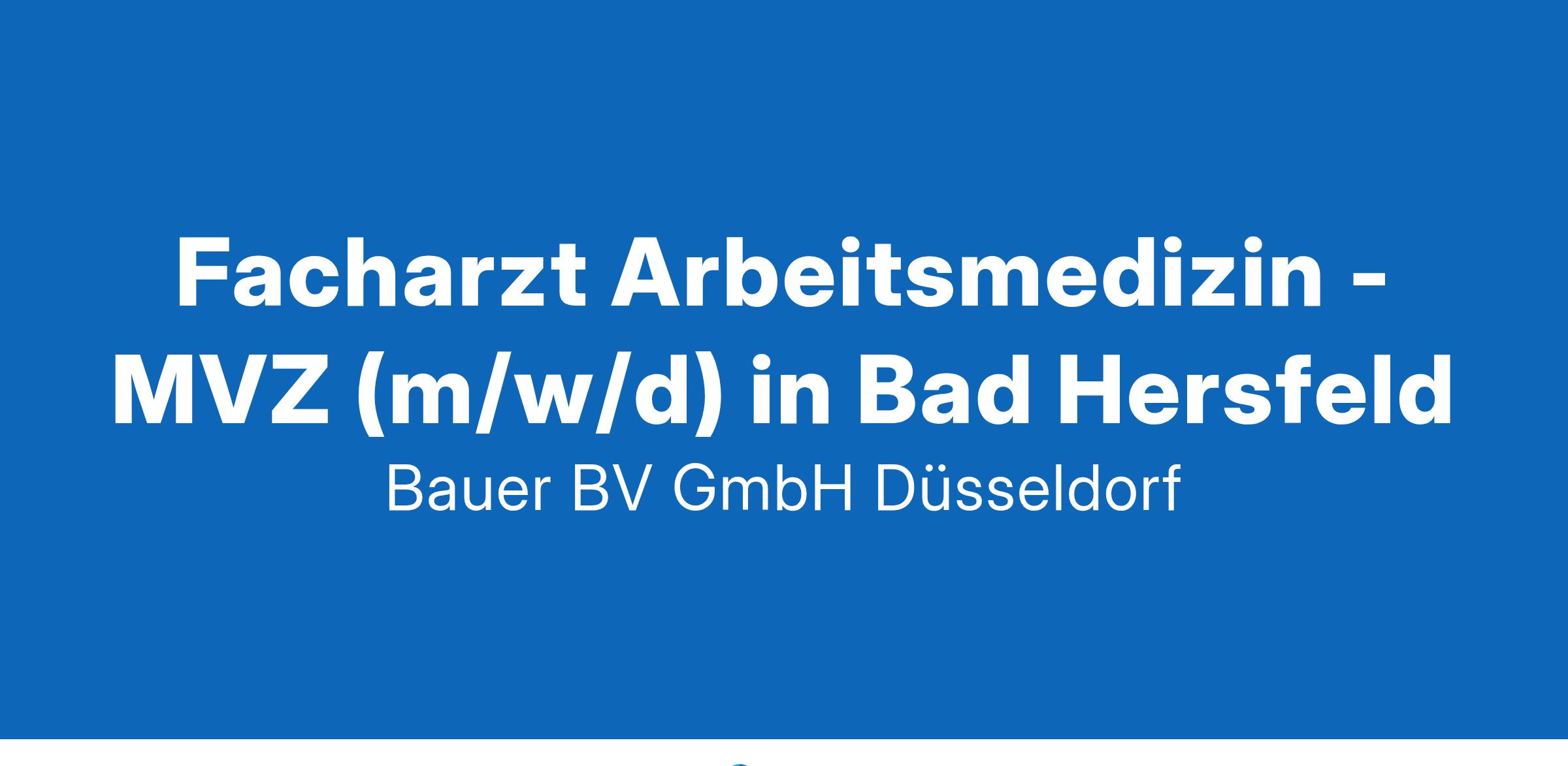 Anstellungsart(en): Teilzeit, VollzeitIhr neuer Arbeitsplatz:Medizinisches Versorgungszentrum mit zahlreiche Fachrichtungen wie Laboratoriumsmedizin, Neurologie, Innere Medizin, Radiologie, Anästhesie uvm.. Die Abteilung für Arbeitsmedizin betreut das Betriebliche Eingliederungsmanagement und Betriebliche Gesundheitsmanagement sowie die Beratung und Betreuung von ca. 2.000 Beschäftigten.Ihre Vorteile:Interessanter und vielseitiger ArbeitsplatzGut ausgestattetes und leistungsfähiges HausGute ArbeitsatmosphäreEigenverantwortung und GestaltungsspielraumEinarbeitung in ein breites AufgabenspektrumFreundliches und engagiertes TeamUnterstützung bei Fort- und WeiterbildungAttraktive VergütungUnbefristete Festanstellung in Voll- oder TeilzeitIhr Profil:Facharztanerkennung für Arbeitsmedizin bzw. mit der Zusatzbezeichnung BetriebsmedizinFundiertes theoretisches Wissen und praktische ErfahrungenWirtschaftliches Denken, hohe soziale Kompetenz, TeamfähigkeitIhr Ansprechpartner:Bauer B+V Personalberatung