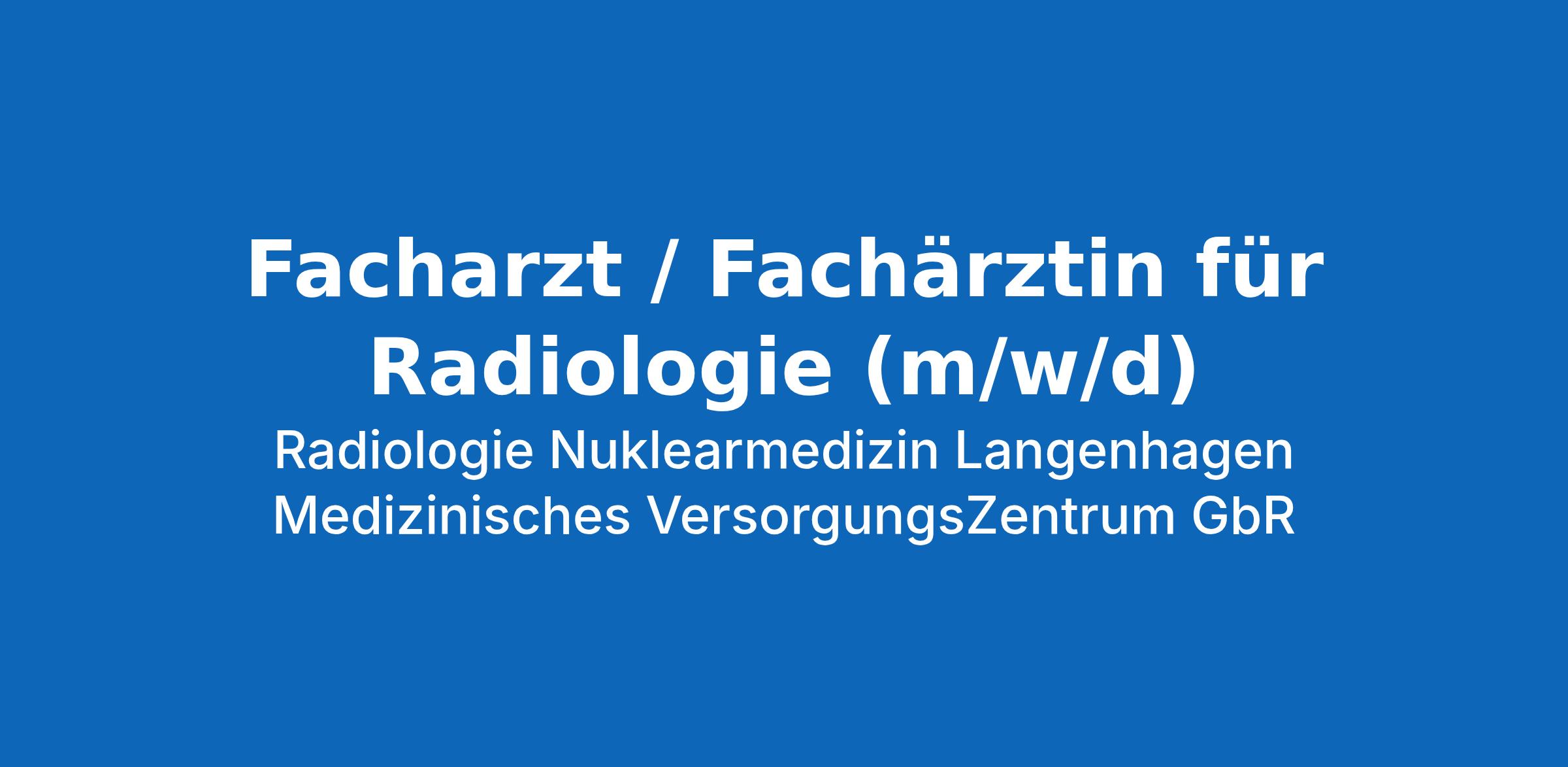 Facharzt / Fachärztin für Radiologie (m/w/d) – Vollzeit